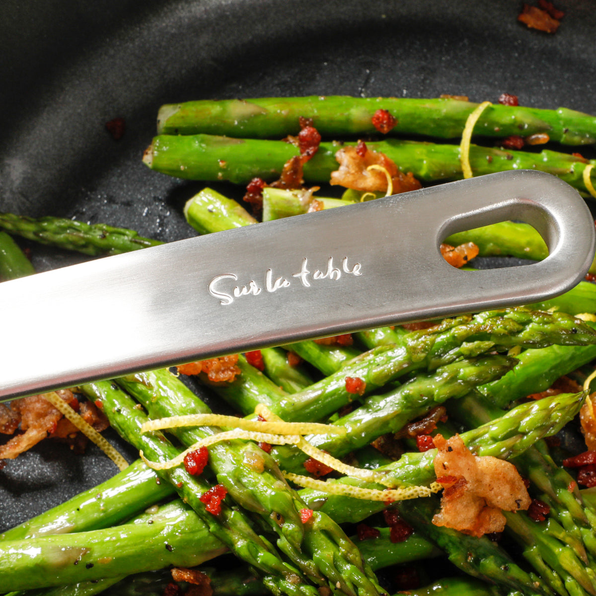 The Sur La Table Market 10-Piece Hard-Anodized Aluminum Nonstick Ceramic Cookware Set is a durable and versatile collection crafted for everyday cooking with professional results. Built from hard-anodized aluminum, each piece ensures even heat distribution and long-lasting strength. The triple-coated, internally reinforced ceramic nonstick interior releases food effortlessly. Safe for all cooktops, including induction, and oven safe up to 450°F (400°F with lids), this set is designed for everything from sautéing to simmering. Riveted stainless steel handles stay cooler with a Y-shaped heat-diffusing design, while tempered glass lids help you monitor progress with ease.