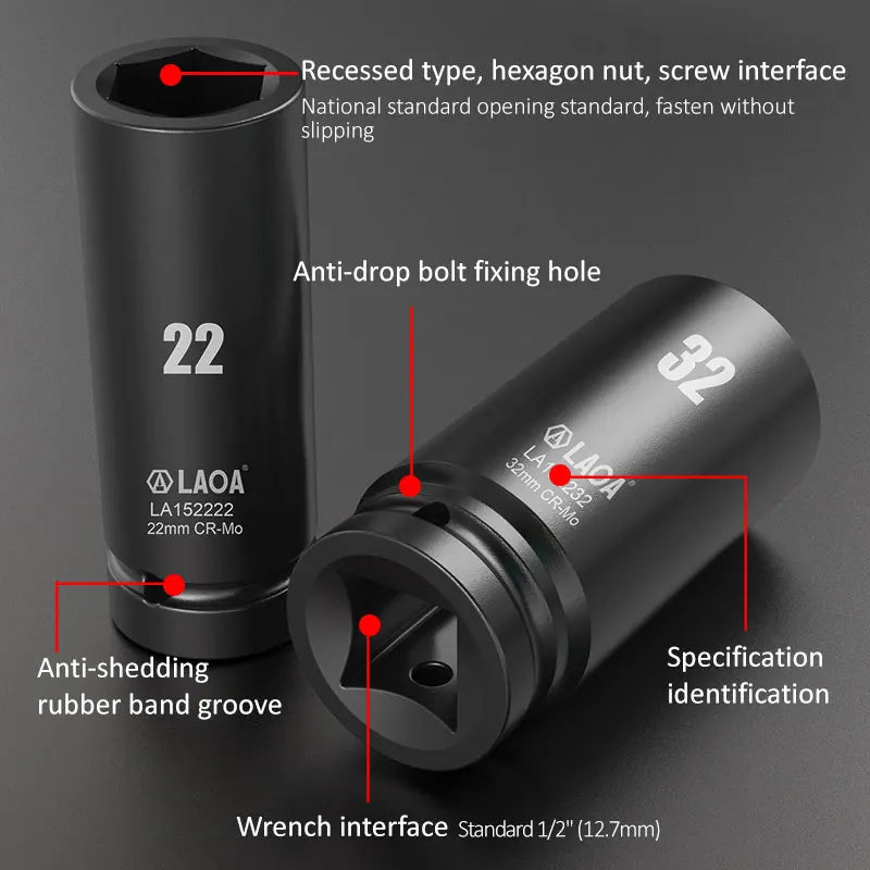 LAOA 17-32mm Hex Socket Wrench 1/2 Inch Head for Ratchet and Drill