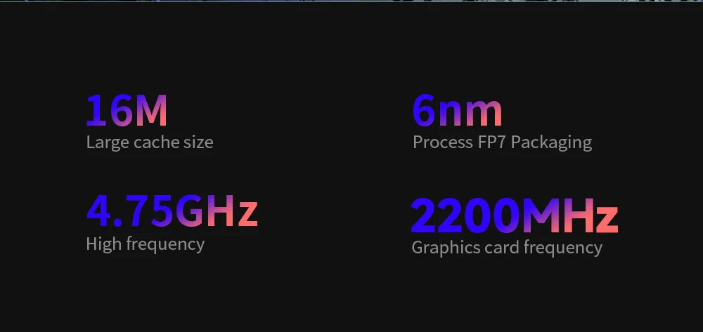 *Equipado con procesadores móviles AMD Ryzen™ 7 con gráficos Radeon™ 7735HS, con 8 núcleos y 16 subprocesos, un encapsulado FP7 de 6 nm, velocidad de reloj de hasta 3,2 G (máximo 4,75 G), 4 MB de caché L2/16 MB de caché L3 y un TDP de 35~54 W. Este potente procesador puede manejar incluso las tareas informáticas más exigentes con facilidad.