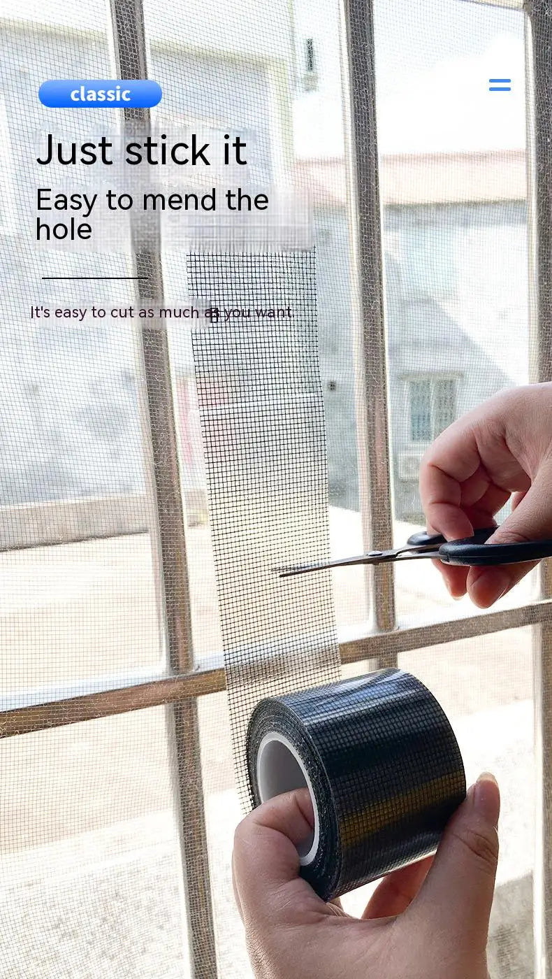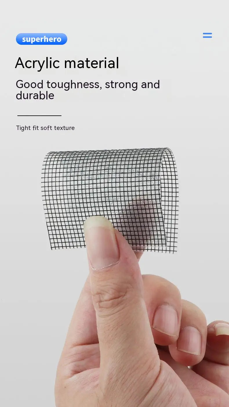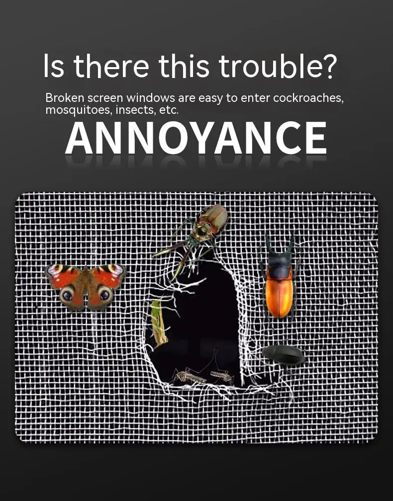 Repara agujeros y rasgaduras en mosquiteros de ventanas, puertas mosquiteras, mallas de tiendas de campaña, mosquiteros de piscinas, mosquiteros de vehículos recreativos, etc.