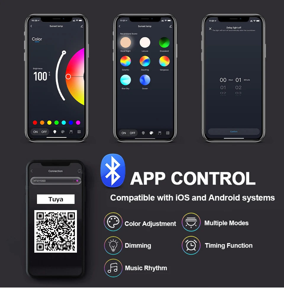 Enjoy the vibrancy of RGB colors and customize your lighting with adjustable brightness and color settings directly from your smartphone or with the included infrared remote control. The Smart Sunset Lamp is perfect for creating an inviting atmosphere for relaxation or celebration.