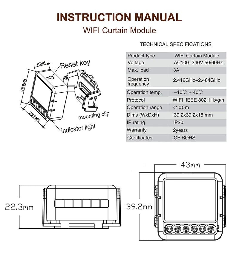 Número de modelo : Interruptor de cortina inteligente Tuya