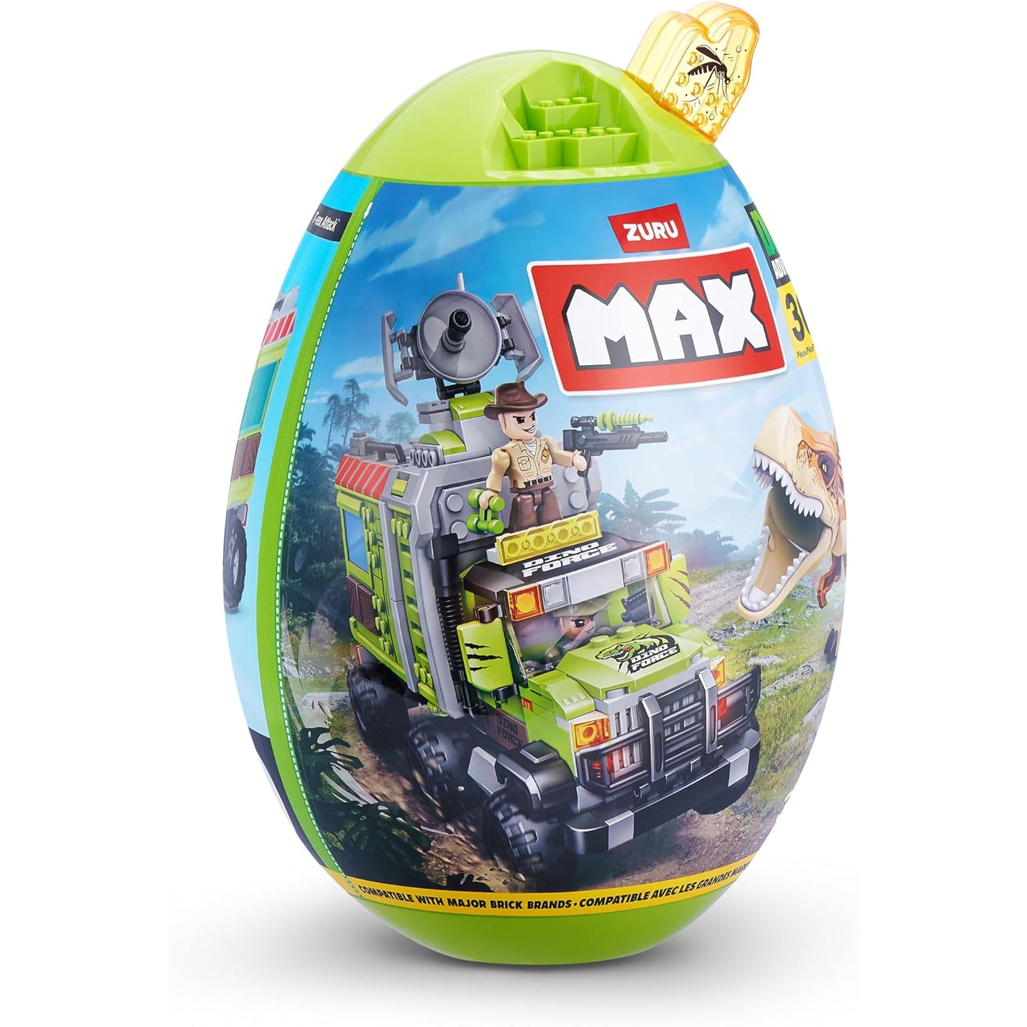 ¡Construye una aventura de dinosaurios con MAX Build More! Construye tu mundo prehistórico construyendo el dinosaurio, el radar y el enorme camión siguiendo las sencillas instrucciones. Usa la señal del radar para localizar a tu dinosaurio. ¡Coloca la figura en el camión y conduce para cazar al dinosaurio épico! ¡Mueve los brazos del dinosaurio para luchar contra la persecución y abre el maletero del camión para atrapar al dinosaurio! Los ladrillos MAX son compatibles con las principales marcas de ladrillos. Construye más por menos con MAX Bricks Dino Adventure.