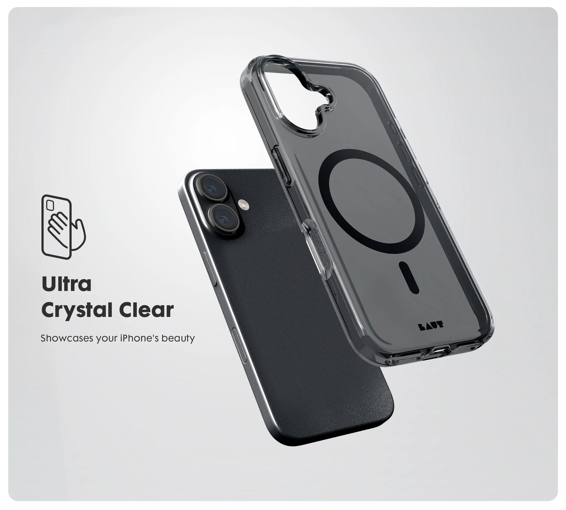 Introducing the Laut Crystal-M case for iPhone 16 Plus in stunning Black Crystal, where eco-friendly design meets cutting-edge technology. This case is not only a stylish accessory but also a robust protection solution for your device. With a slim profile that fits comfortably in your hand, it showcases the natural beauty of your iPhone while providing reliable defense against drops and impacts. Thanks to its advanced anti-yellowing technology, your case will maintain its pristine clarity over time. Designed with MagSafe compatibility, the Crystal-M case allows for effortless attachment of accessories, making it the ideal choice for the conscious user who values both aesthetics and functionality.