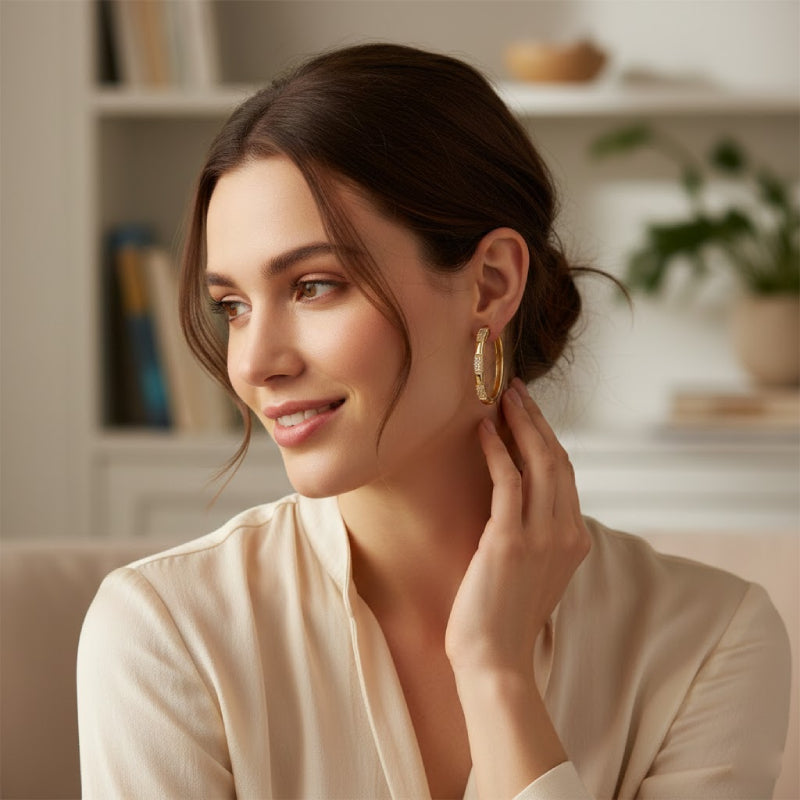 - Sleek hoop design flatters the face and works for day-to-night wear.
