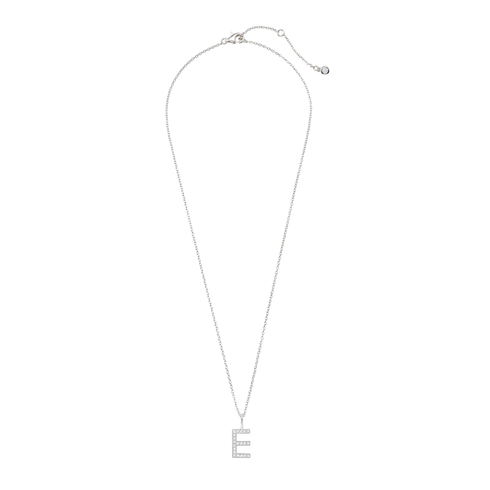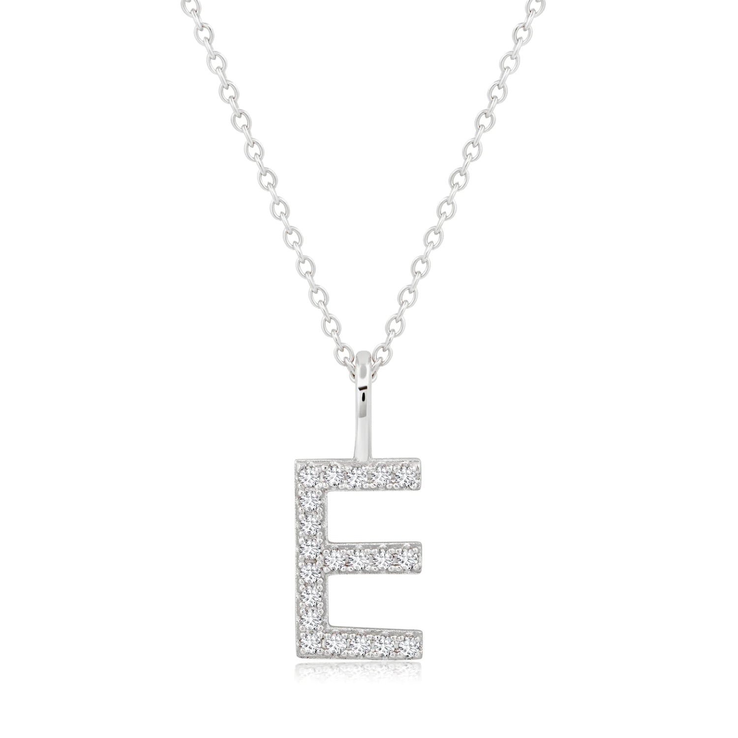 Collar con colgante inicial de circonita cúbica de 18" y 0,115 ct con la letra "E" de Crislu en plata de ley 925 bañada en platino puro