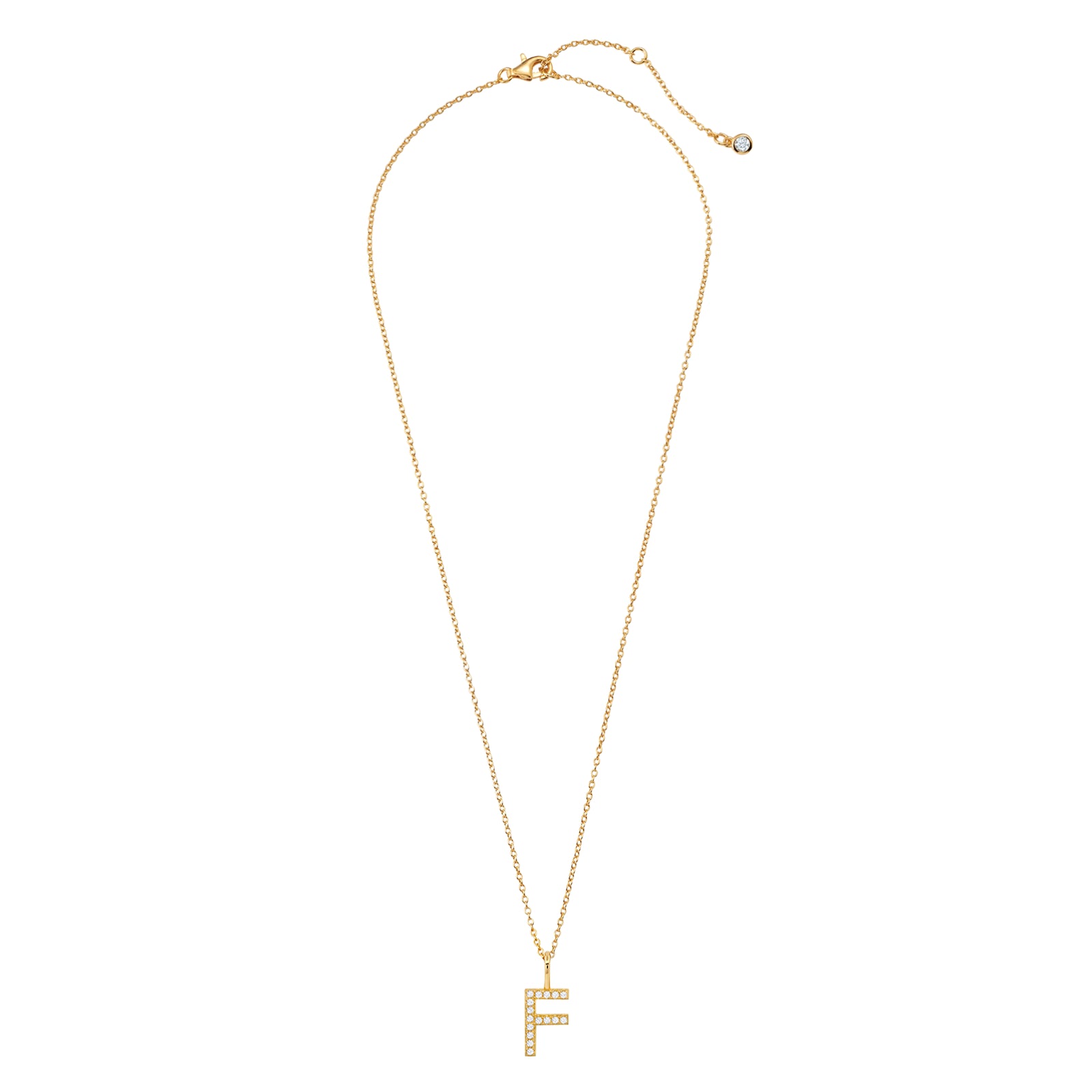 Collar con colgante inicial de circonita cúbica de 18" y 0,115 ct con la letra "F" de Crislu en plata de ley 925 bañada en oro amarillo de 18 quilates