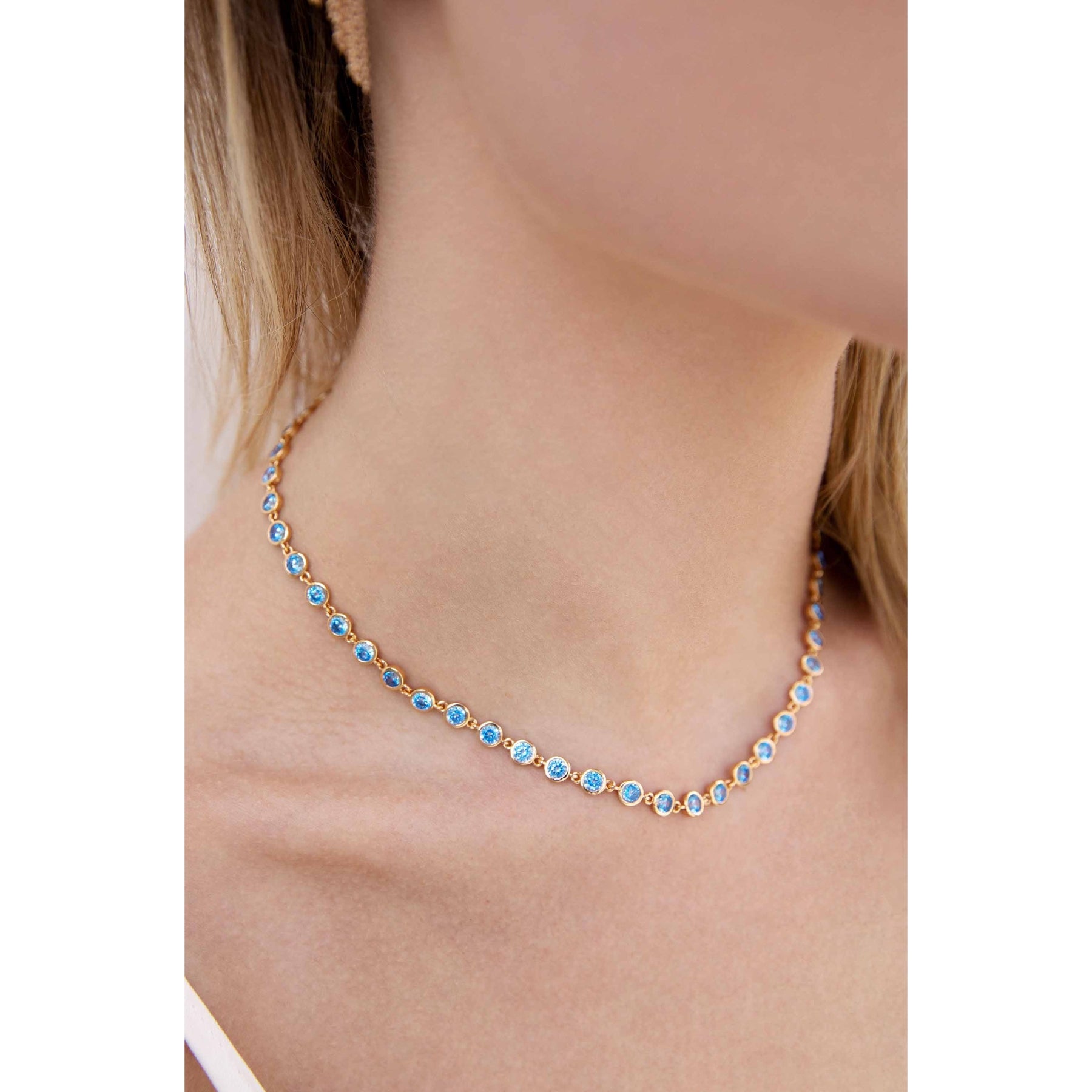 Este collar de eslabones con cristales de aguamarina de Ettika bañado en oro de 18 quilates es el toque final perfecto para cualquier atuendo. Agregue un toque de clase a su guardarropa con esta pieza de joyería atemporal.