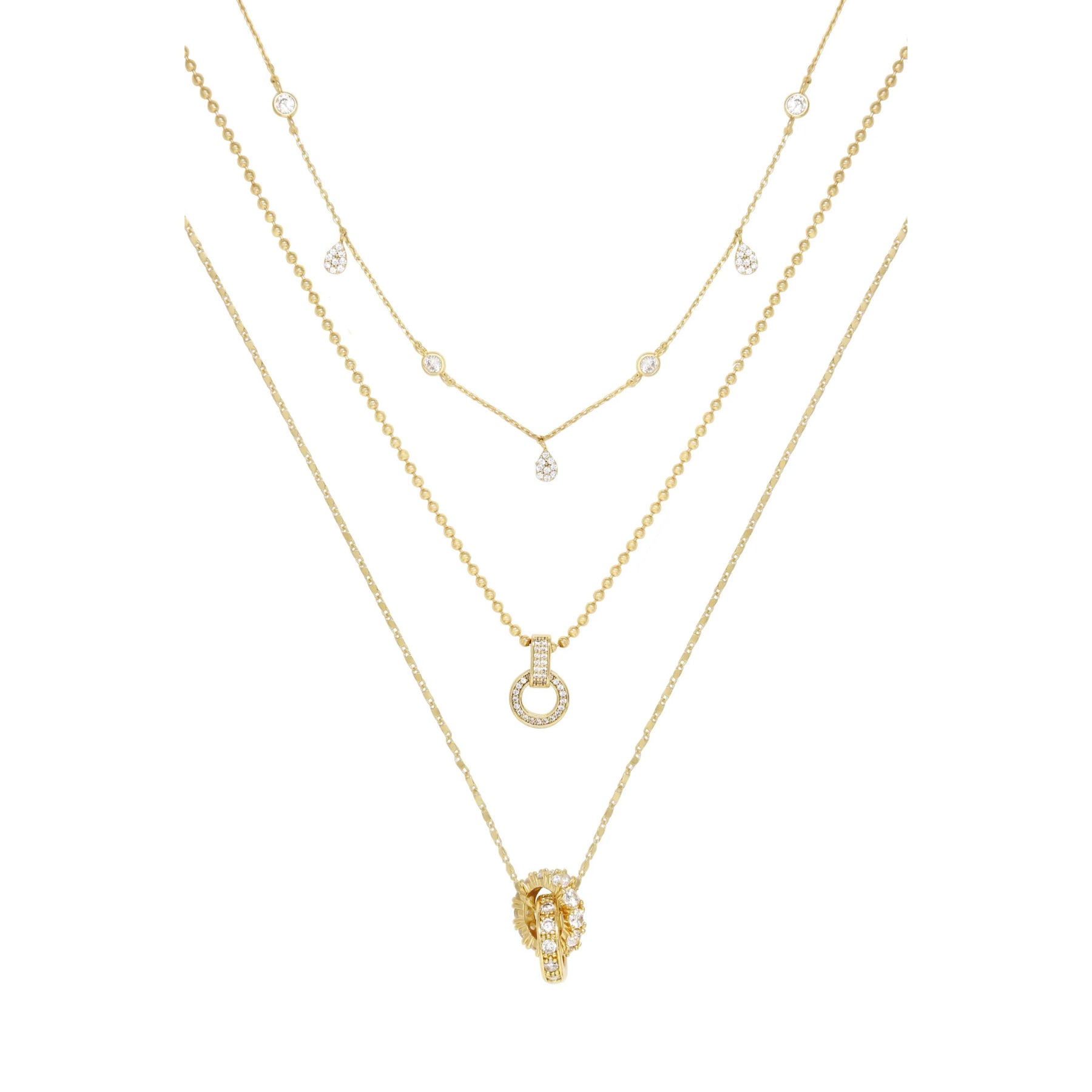 Conjunto de tres collares chapados en oro de 18 k con cristales delicados de Ettika