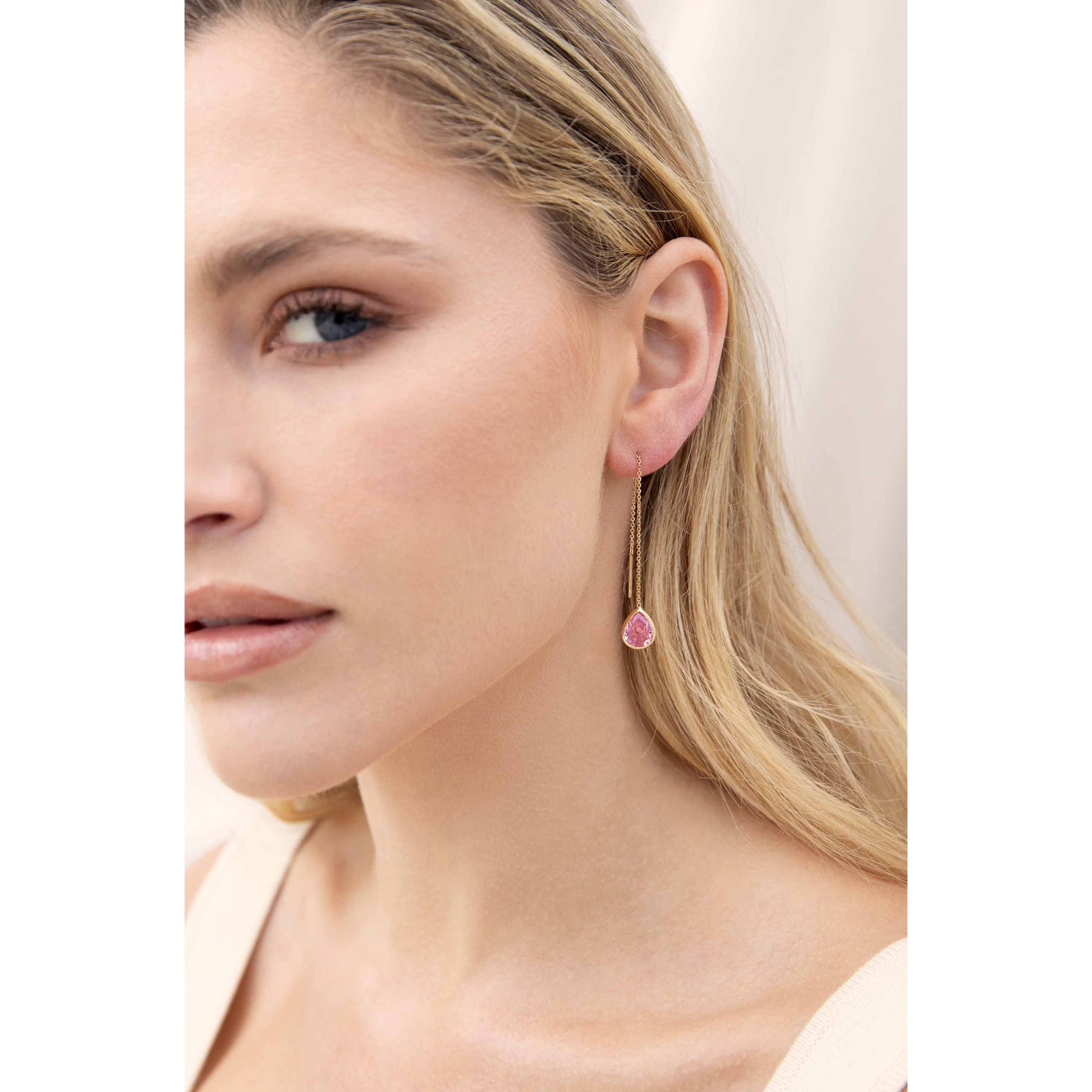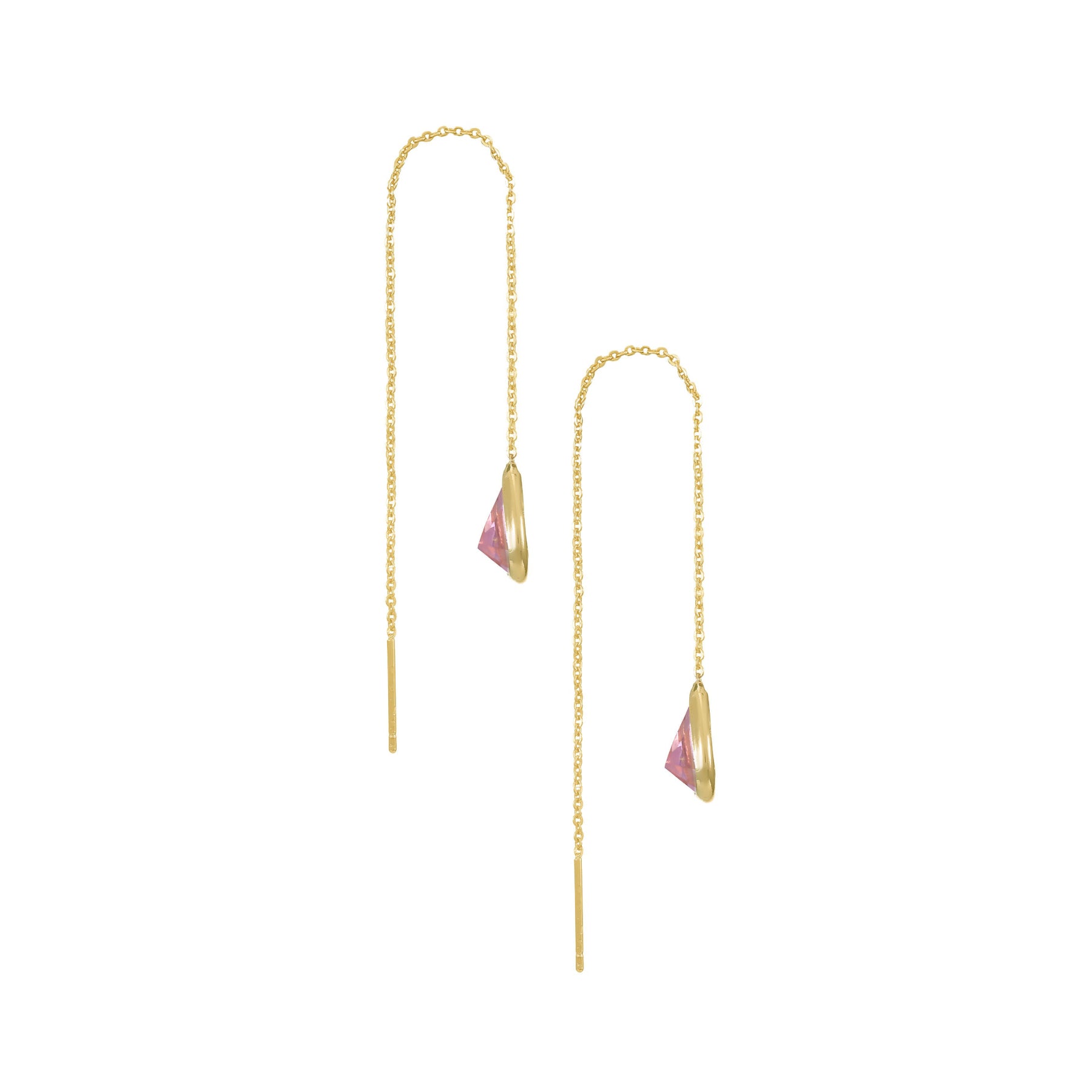 Pendientes colgantes de mujer Ettika con tres cadenas y cristales rosa claro bañados en oro de 18 k