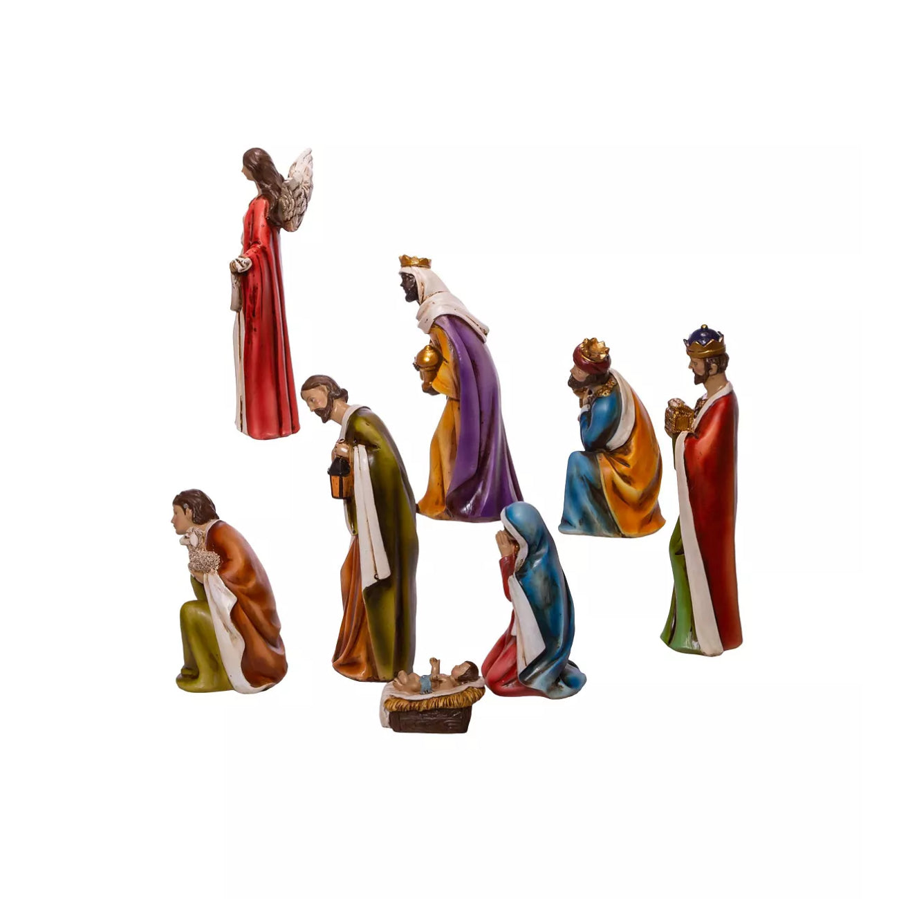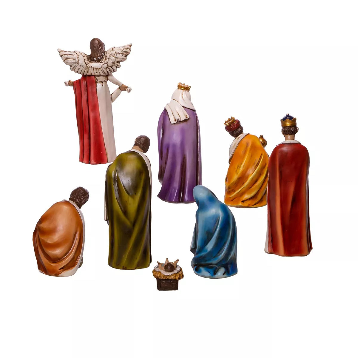 Celebre y recuerde el verdadero significado de la Navidad con este belén de resina de 6,25 pulgadas de Kurt Adler. Cada una de las 8 piezas independientes de este juego presenta colores vivos y llamativos acentuados por detalles en oro y bronce. El juego incluye la Sagrada Familia (el Niño Jesús no se puede quitar del pesebre), los Reyes Magos, un pastor que sostiene un cordero y un ángel.