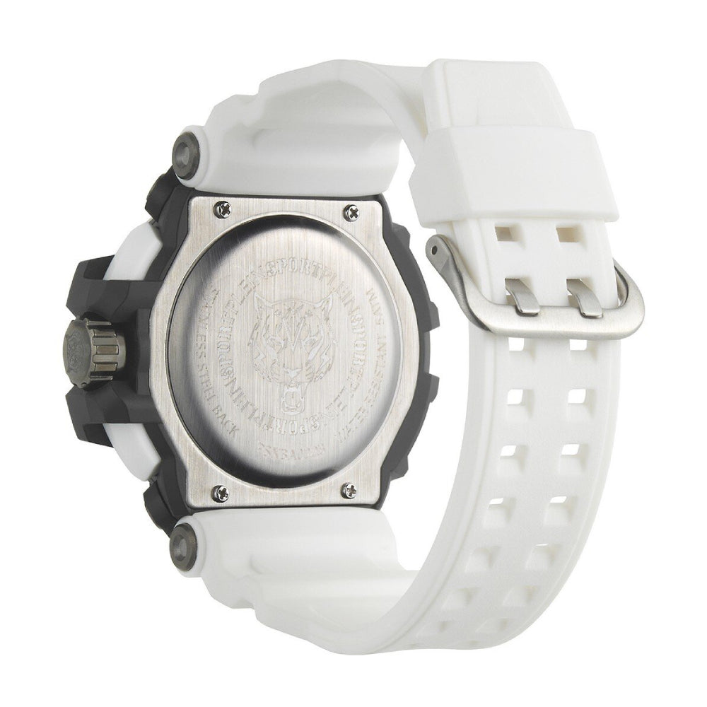Reloj de cuarzo Plein Sport Combat para hombre, correa blanca, 50 mm, esfera negra