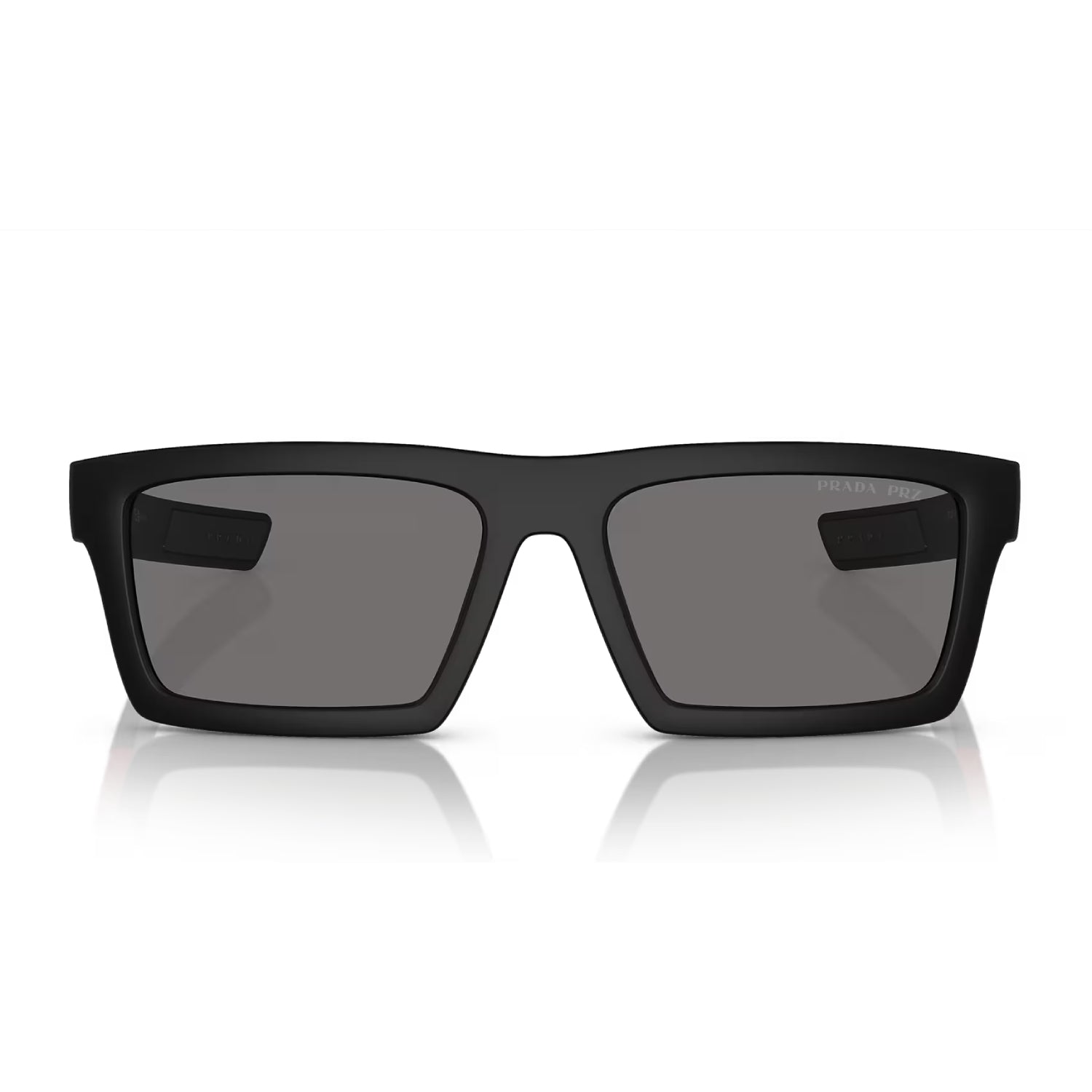 Gafas de sol rectangulares de color liso PS02ZS para hombre de Prada Linea Rossa - Mette Black/Dark Gray Polarized