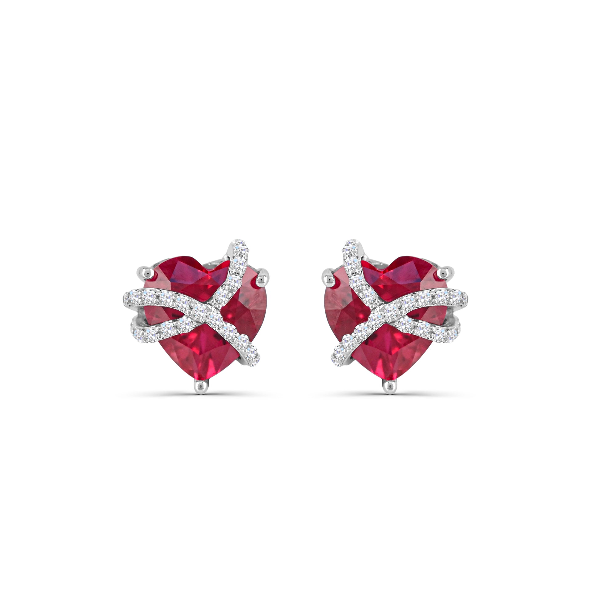 Pendientes de plata de ley con rubí creado y zafiro blanco creado