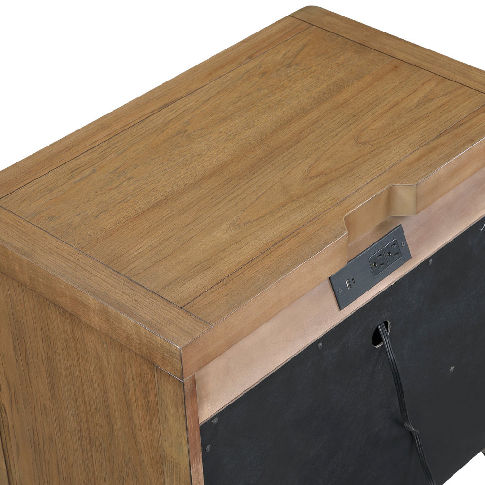 Transform your bedroom into a haven of warmth and functionality with the Hudson 3-Piece Bedroom Set by Homelegance. This coordinated collection includes a platform bed with storage drawers, a six-drawer dresser, and a two-drawer nightstand — each crafted from a durable blend of hickory veneer, wood, and engineered wood. Finished in a soft light brown tone, the set exudes timeless charm and natural sophistication. The bed’s side-rail storage drawers glide smoothly on ball-bearing glides, while the dresser and nightstand feature dovetail drawers accented with sleek pewter-tone bar pulls. The nightstand adds a modern touch with built-in power outlets and USB-A & C ports, providing easy access for charging devices. With its sturdy build, thoughtful details, and fully assembled dresser and nightstand, this bedroom set perfectly balances elegance, convenience, and everyday practicality.