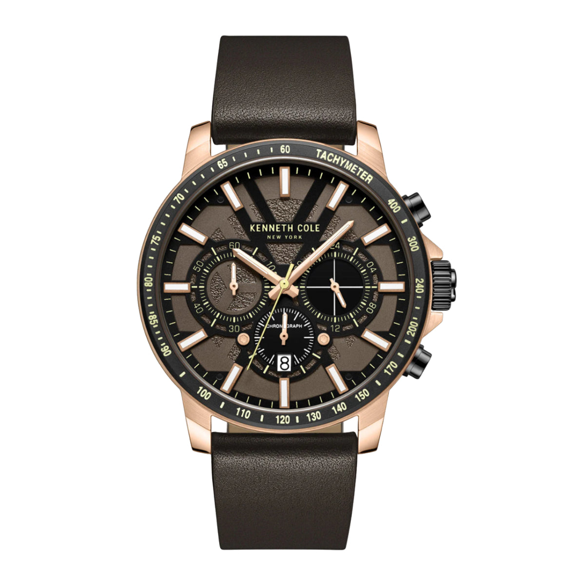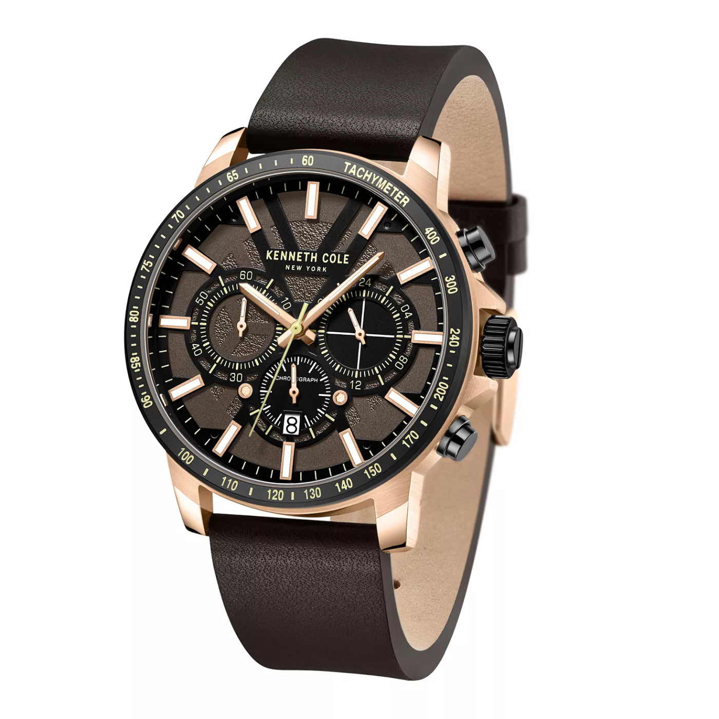 Reloj cronógrafo de cuarzo Kenneth Cole para hombre de 44 mm, color marrón