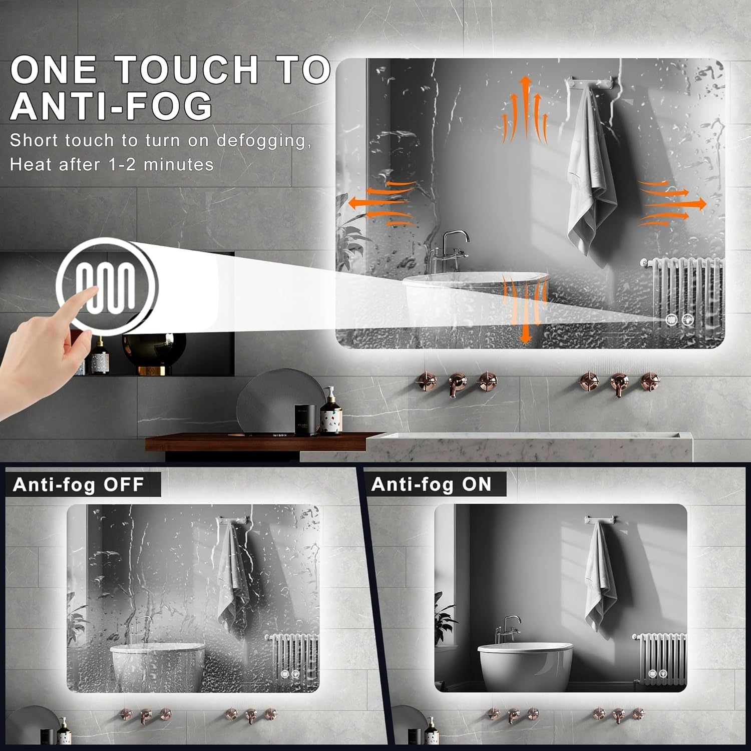 - [Advanced anti-fog] This LED bathroom mirror uses advanced anti-fog technology, no need to wipe the mirror after showering, fast anti-fog, lasting for one hour.