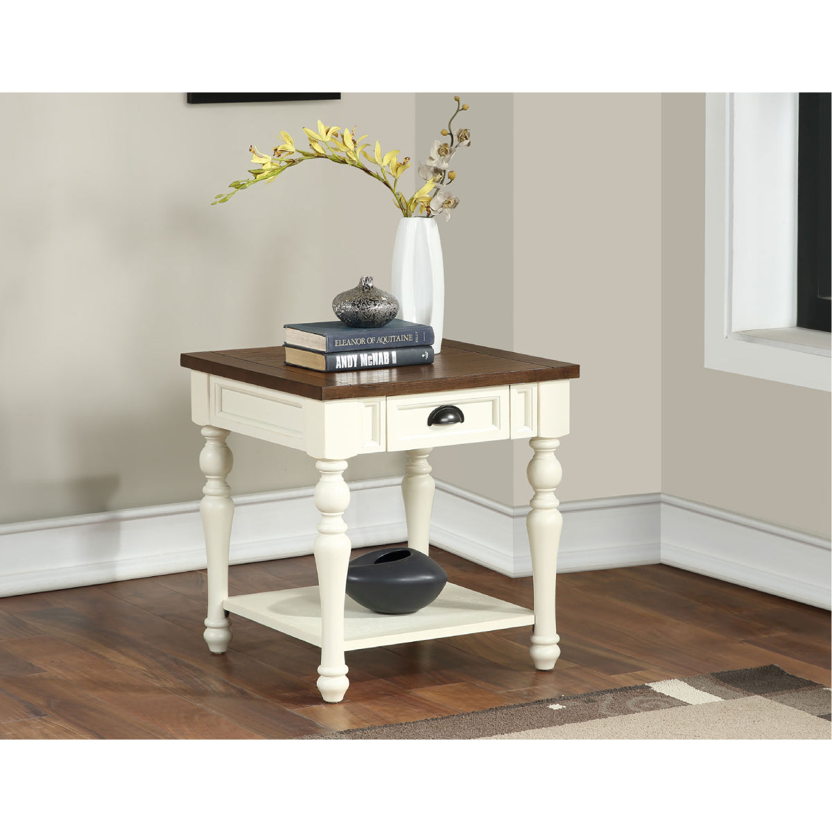 Mesa auxiliar Joanna de 22" con cajón y estante abierto de Steve Silver Company - Marfil/moca