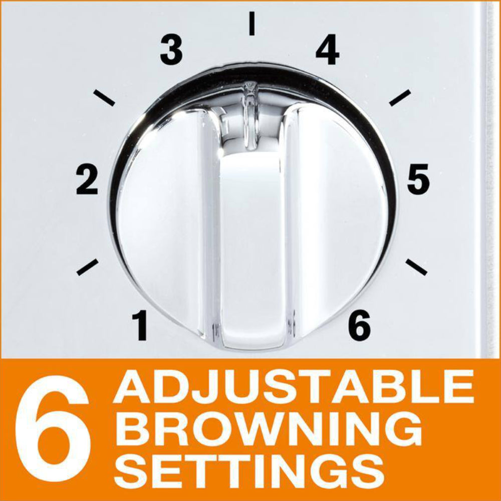 Ranuras extra profundas para dorar de manera uniforme rebanadas cortas y largas.