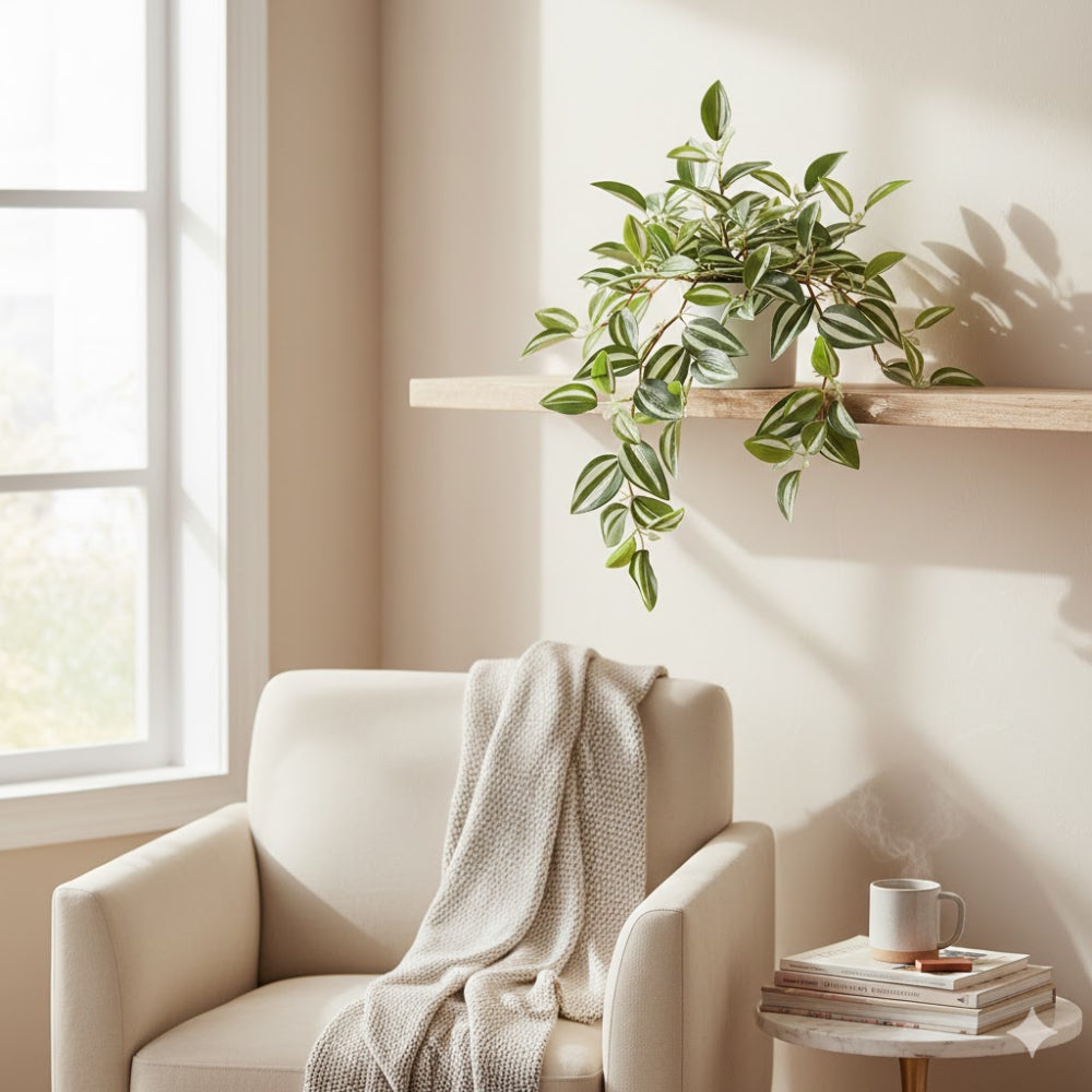 Enhance any room with the lush, cascading beauty of this 10" Wandering Jew Silk Hanging Plant, designed to bring refreshing greenery into your home or office without the need for upkeep. Featuring striking green and cream foliage arranged in a decorative terra cotta pot, this lifelike faux plant adds warmth, color, and charm to living rooms, hallways, workspaces, and covered porches. Crafted with exceptional realism and long-lasting materials, it keeps its vibrant appearance year-round, making it a perfect decorative accent for both home décor enthusiasts and busy professionals who want effortless elegance.