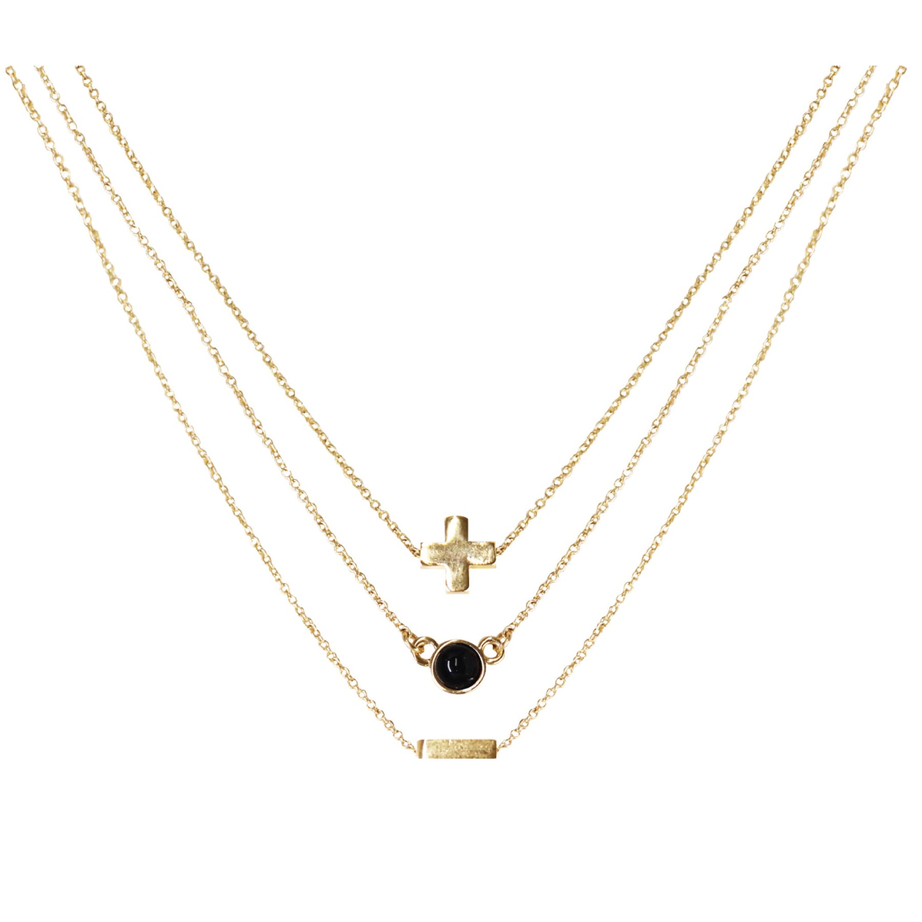 Collar chapado en oro de 18 k y ónix de 16" (juego de 3)