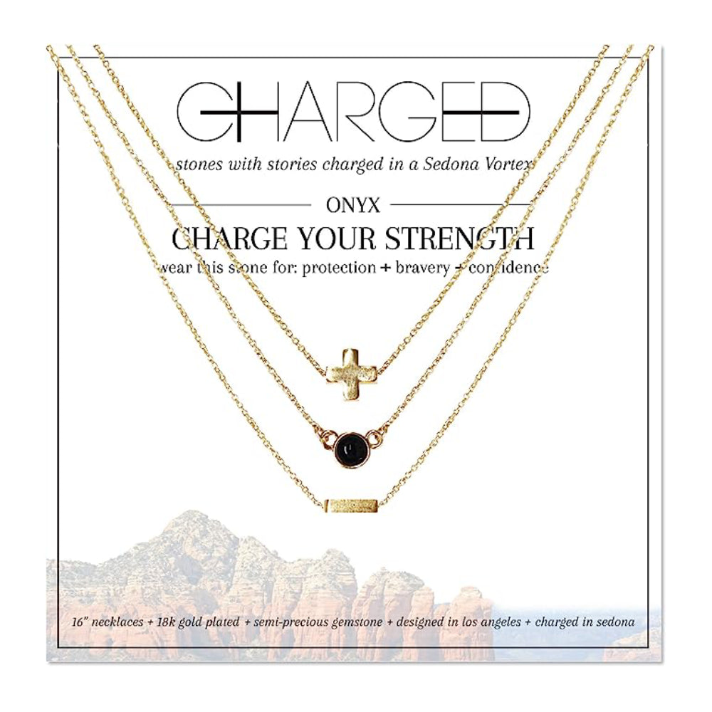 Realza tu colección de joyas con este collar de ónix de 16" chapado en oro de 18 k (juego de 3). Elaborado con una meticulosa atención a los detalles, este cautivador collar presenta tres impresionantes piedras preciosas de ónix en una cadena chapada en oro de 18 k. La longitud de 16" se adapta perfectamente a tu escote y agrega un toque de elegancia a cualquier atuendo. Ya sea que los uses individualmente o los apiles para lograr un estilo más atrevido, estos collares son versátiles y elegantes sin esfuerzo.