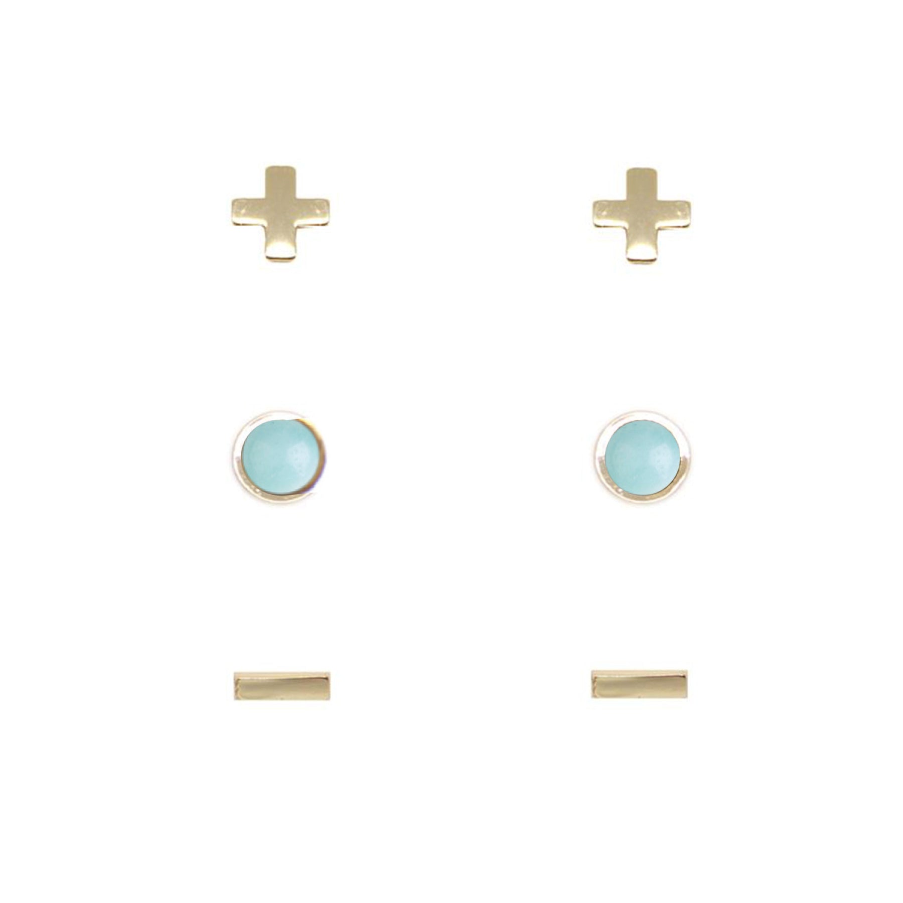 Pendientes de botón de amazonita chapados en oro de 18 quilates para mujer (juego de 3)