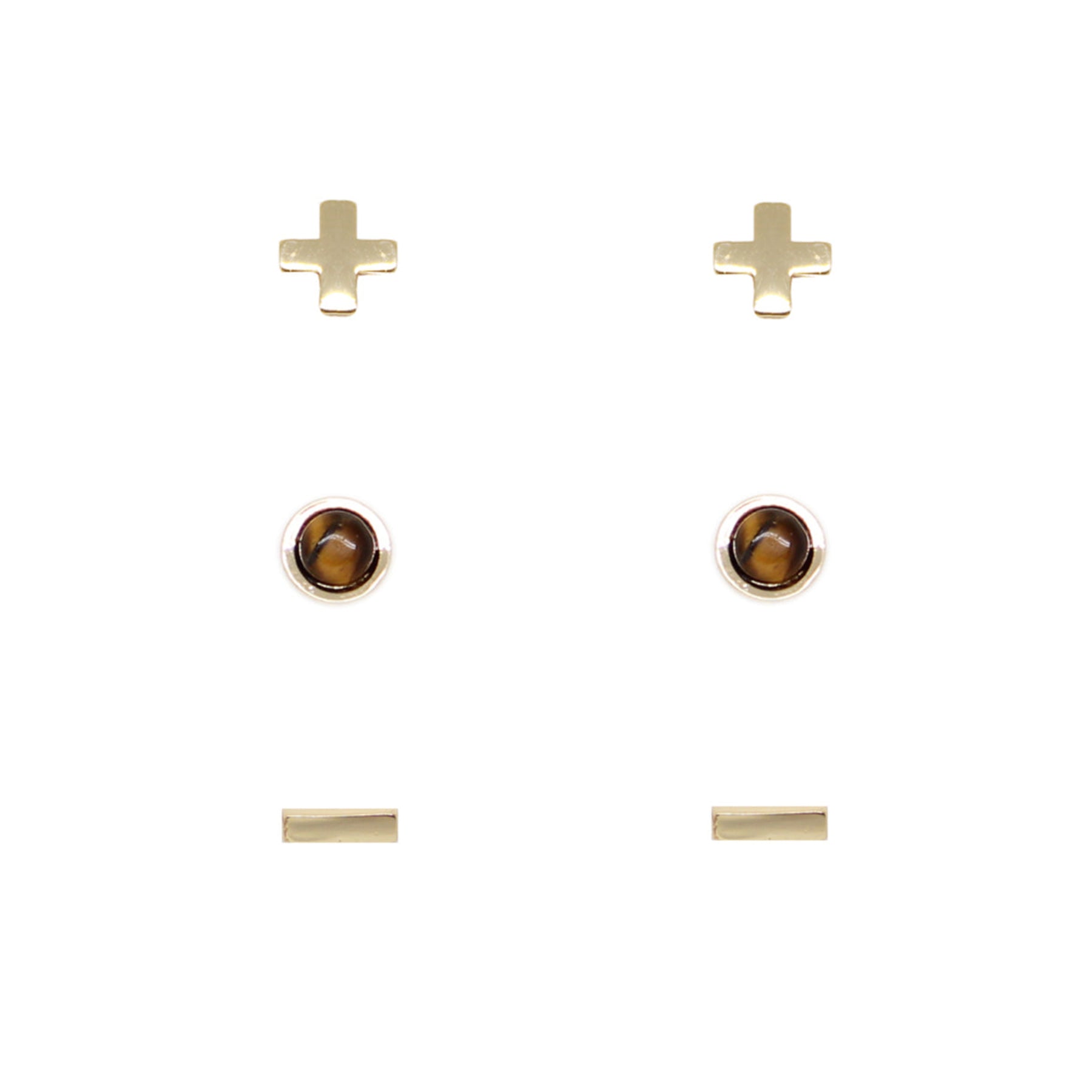 Pendientes de botón con ojo de tigre chapados en oro de 18 quilates para mujer (juego de 3)