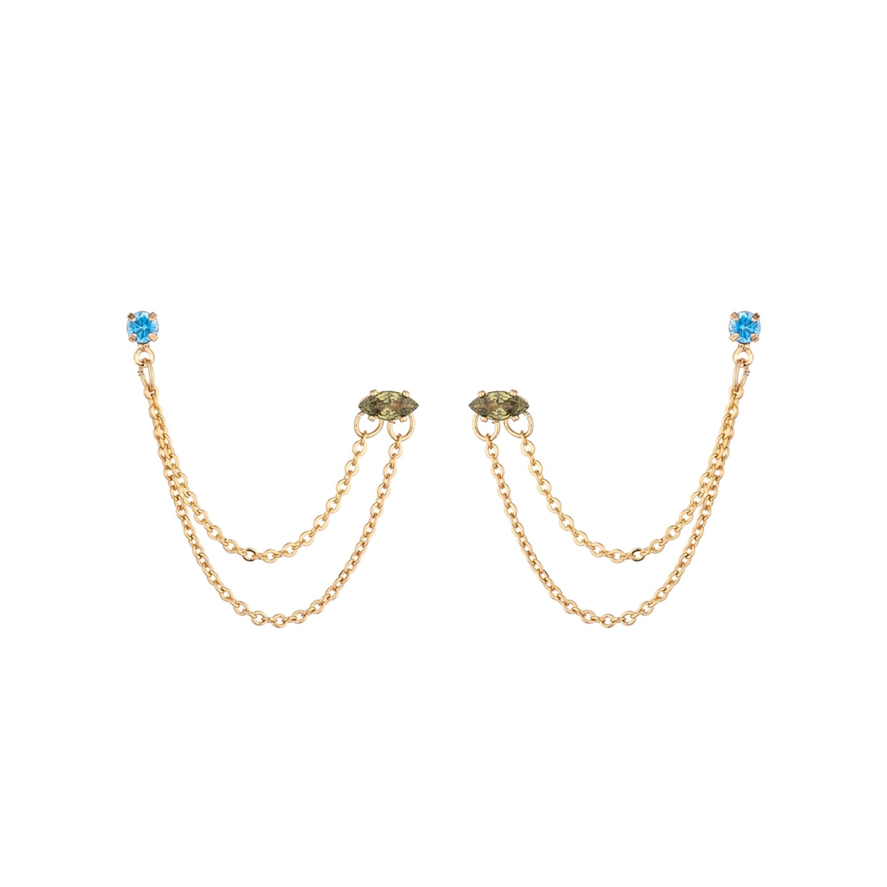 Pendientes colgantes de cristal azul Ettika para mujer chapados en oro de 18 k con cadena perforada de dos orificios