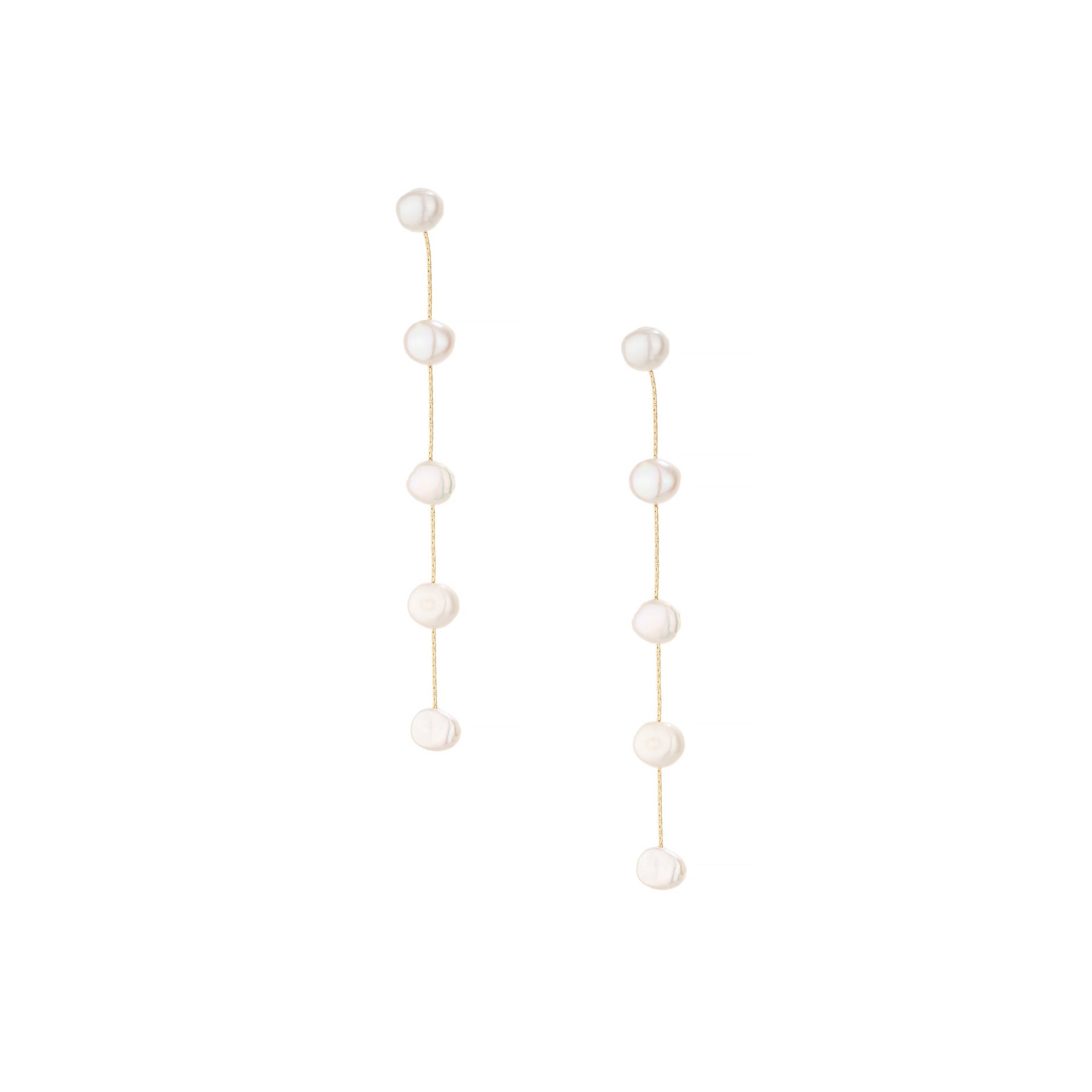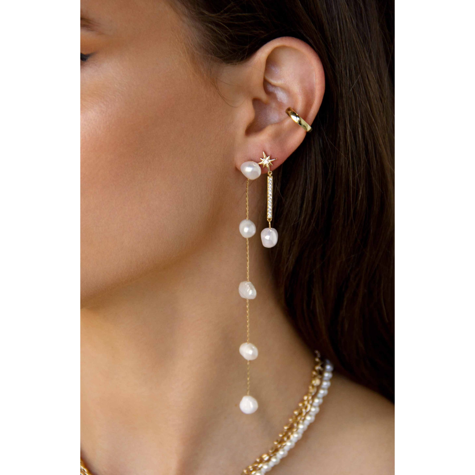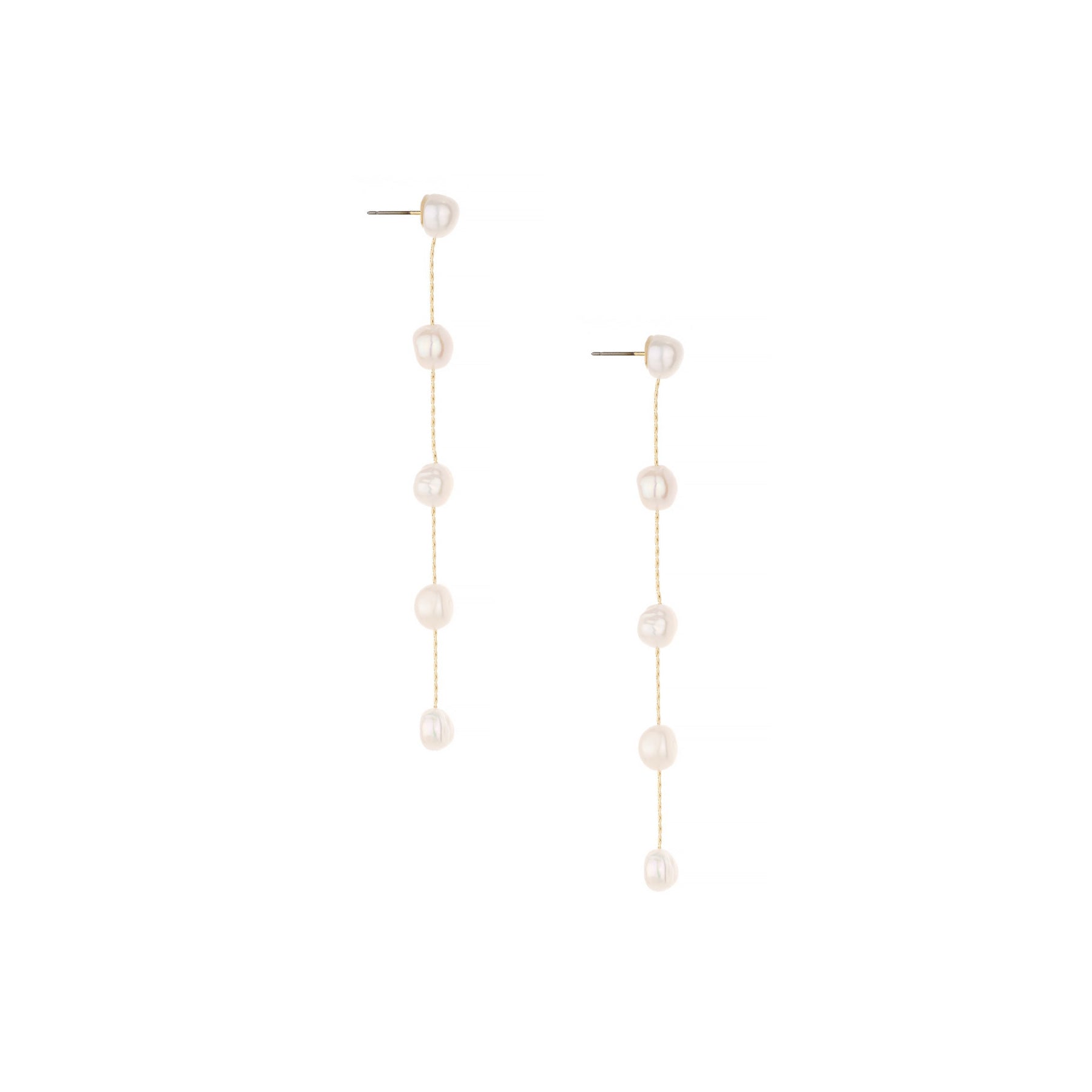 Pendientes colgantes chapados en oro de 18 k con perlas blancas que gotean para mujer de Ettika