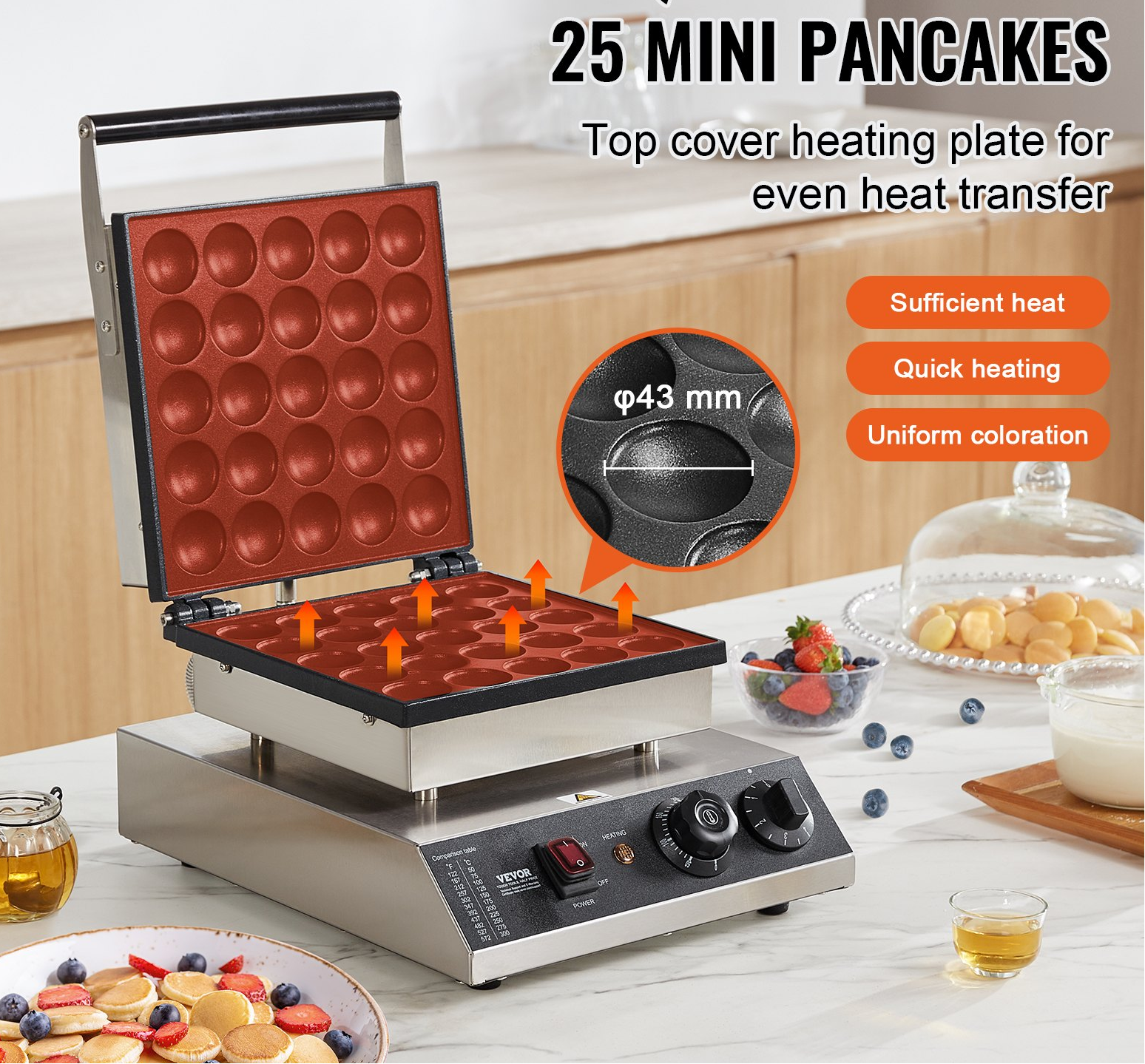Mini Dutch Pancake Maker, 25PCS 43mm Diameter Dorayaki Baker Machine, 1700W Commercial Electric Poffertjes Grill, Non-stick Stainless Steel, Temp & Time Control, for Home Kitchen Restaurant