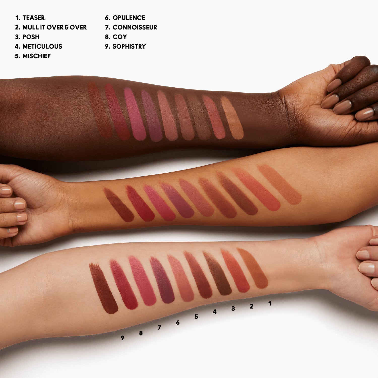 Disfruta de 24 horas de un color mate intenso con nuestro lápiz labial resistente a los besos y a las transferencias. Con una barra fina y ultraprecisa, nuestro lápiz labial de mayor duración hasta la fecha cubre los labios sin esfuerzo con un acabado mate ultracremoso de cobertura total. Nuestra exclusiva tecnología FlexiLock brinda una cobertura flexible y duradera para unos labios más suaves y tersos. Esta fórmula beneficiosa para los labios viene repleta de nutrientes con aceite acondicionador de maracuyá para una sensación cómoda y casi desnuda. No se saltea la aplicación, no se arrastra y no necesita retoques. Solo gira y desliza para aplicar, luego vuelve a tapar hasta que escuches un clic una vez que tu look esté fijado.