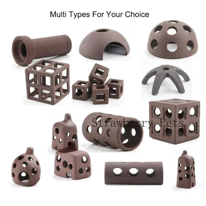 These Fish shrimps shelters are made of high quality purple sand (ceramic), breathable and non-toxic.