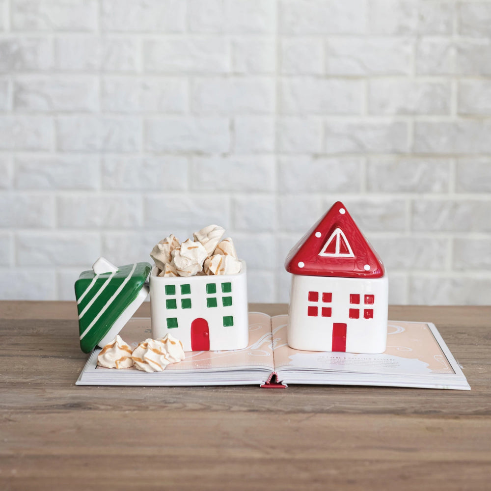 Transform your living space into a whimsical haven with the Creative Co-op Jar (Set of 2) - Multicolor. These delightful house-shaped jars, crafted from durable dolomite ceramic, are hand-painted with intricate details that exude charm and personality. Perfect for storing small items or as decorative accents, they add a cozy touch to any room. Elevate your home decor while keeping essentials organized with these eye-catching jars that seamlessly blend functionality with artistry.