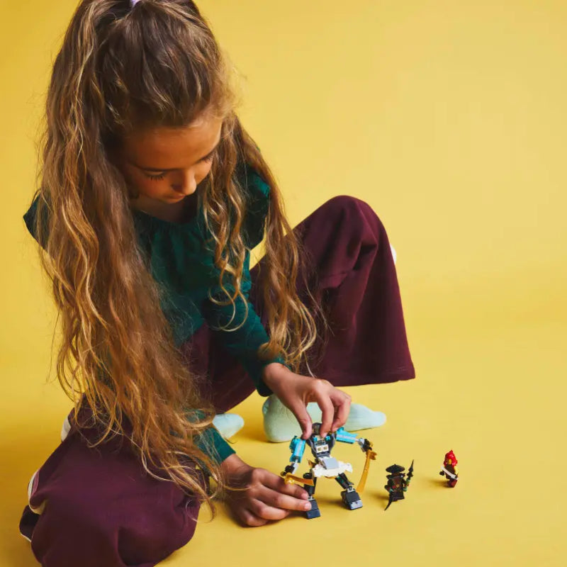 Unlock the adventure of NINJAGO with the LEGO NINJAGO Zane's Battle Suit Mech Toy Set (92-Pieces). Perfect for boys and girls aged 6 and up, this captivating mech toy set immerses young fans in the thrilling world of the NINJAGO Dragons Rising TV show. With a fully articulated mech featuring flexible arms, legs, and an upper body that rotates 360 degrees, children can engage in endless imaginative play. The mech's chest opens to securely place a minifigure inside, ensuring that Zane, Wyldfyre, and Drix can join in on the action with their respective weapons. This set not only encourages creativity but also strengthens fine motor skills as kids build and play. Product Highlights. Dynamic mech design with flexible movement for interactive play. Includes 3 iconic NINJAGO minifigures for diverse play scenarios. Equipped with various accessories to enhance battle scenes. Compatible with the LEGO Builder app for a guided building experience. Perfect for birthdays, holidays, or any occasion for LEGO fans.