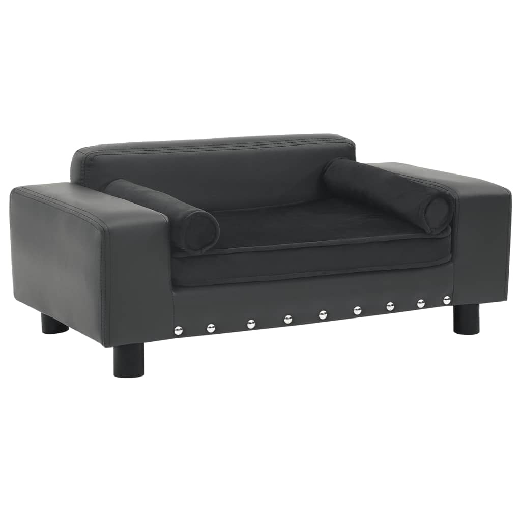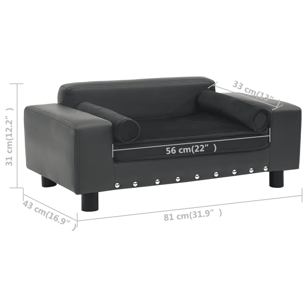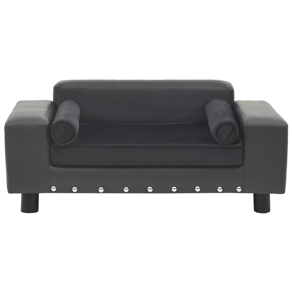 vidaXL Dog Sofa Dark grey Faux leather, Plush, Solid fir wood