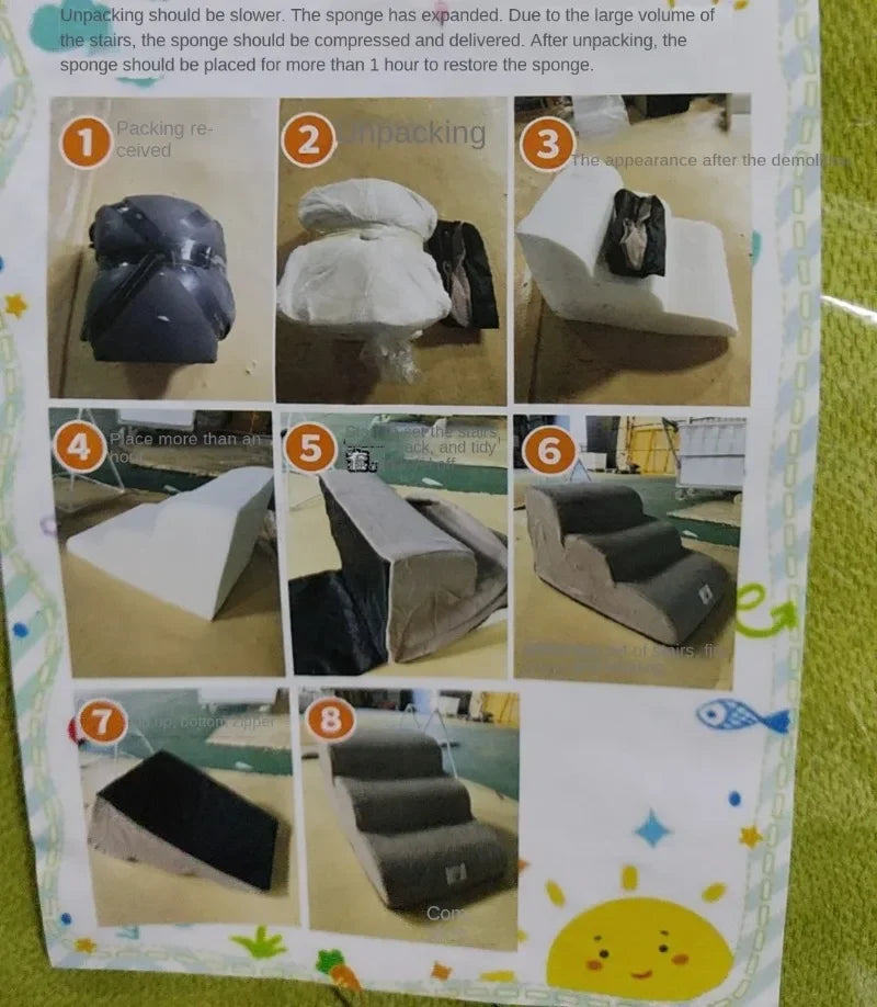 3 Layer Dog Cat Ramp Ladder with Memory Foam Washable Cover