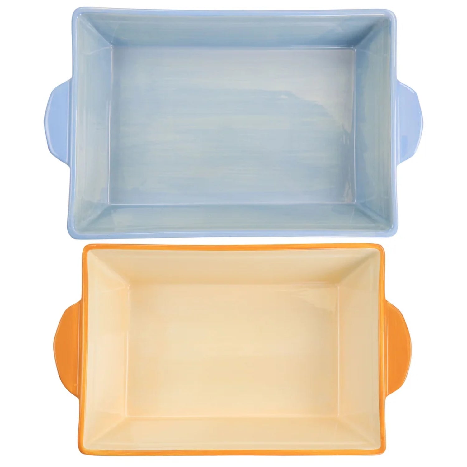 Mejora tu juego de utensilios para hornear del horno a la mesa con un juego de utensilios para hornear de 2 piezas. Estos coloridos utensilios para hornear son una excelente manera de servir todas tus habas, dulces o saladas. Fabricados en cerámica de gres, se calientan de manera uniforme para promover un dorado adecuado. Están adornados con vibrantes diseños florales de acuarela y cuentan con asas anchas para transportarlos fácilmente. La opción perfecta para hermosas recetas horneadas.