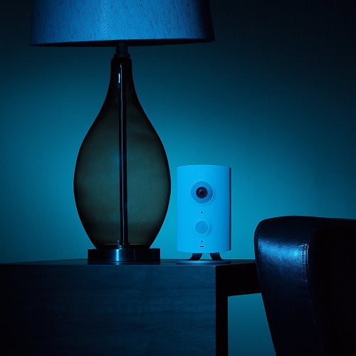 El sistema de seguridad para el hogar todo en uno RP1.5-NA-WE blanco con cámara HD de visión nocturna y monitoreo de video de PIPER utiliza un sensor de imagen CMOS de 3,4 MP y una lente ojo de pez para capturar imágenes HD en 180