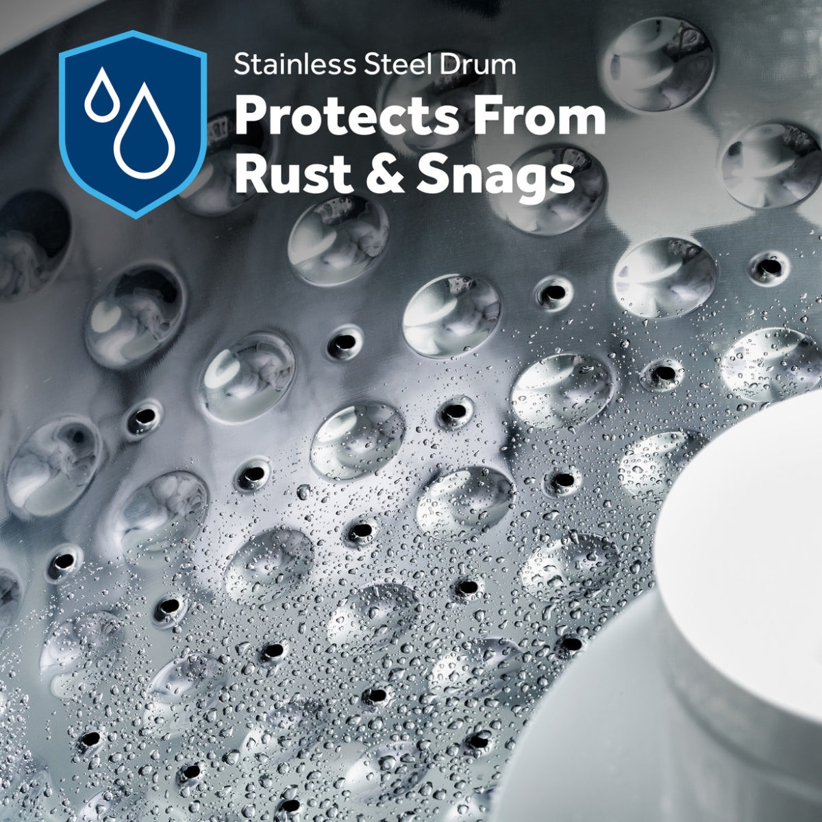 La cesta de acero inoxidable garantiza que tanto su electrodoméstico como su ropa estén protegidos contra el óxido, las astillas, las descamaciones o los enganches.