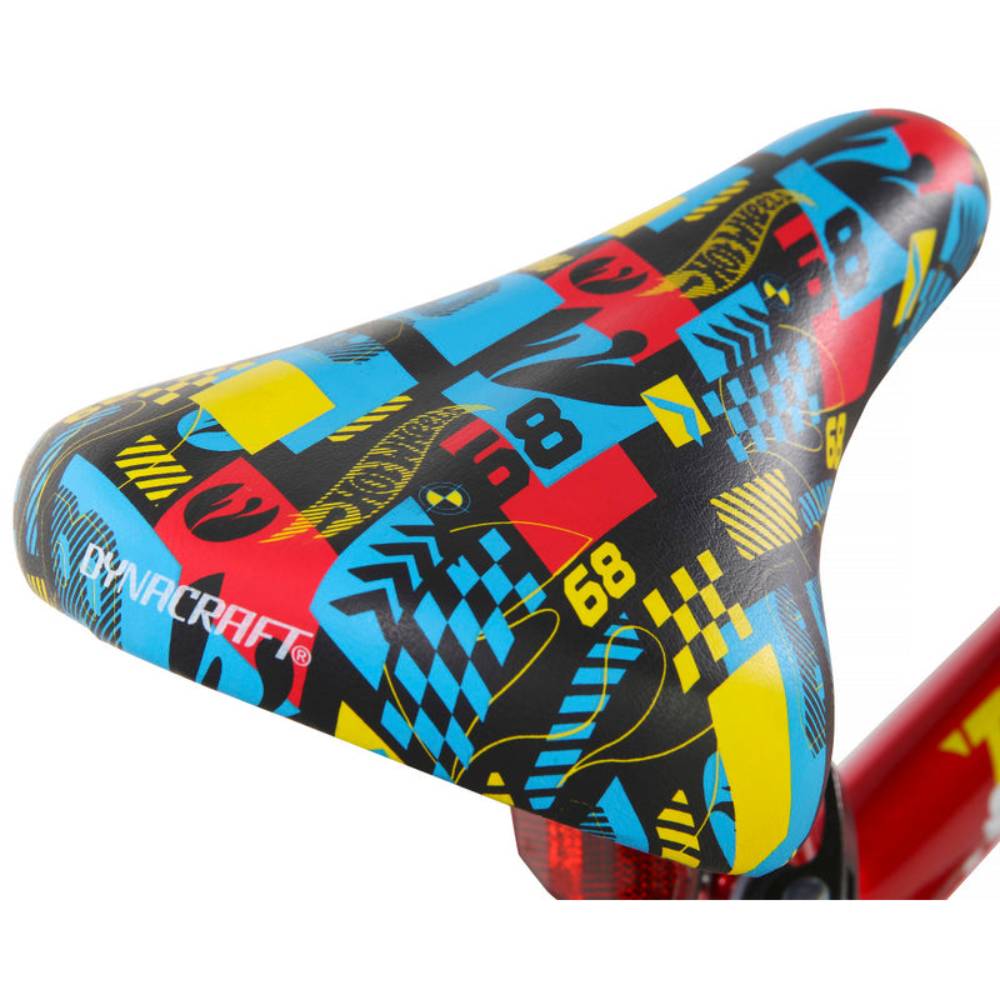 Fuel your child’s need for speed with the Dynacraft 18-Inch Hot Wheels Boys Bike. Featuring bold red, yellow, and blue paint with custom Hot Wheels graphics across the frame, this bike ensures an unmistakable presence on every ride. A Hot Wheels handlebar shield adds extra style, while the solid rear coaster brake provides safe, controlled stopping. Removable and adjustable training wheels help beginners build confidence and balance as they learn to ride independently. Designed with 18-inch wheels and a racing theme, this bike is perfect for boys ages 6–9, combining excitement, safety, and durability for countless neighborhood adventures.