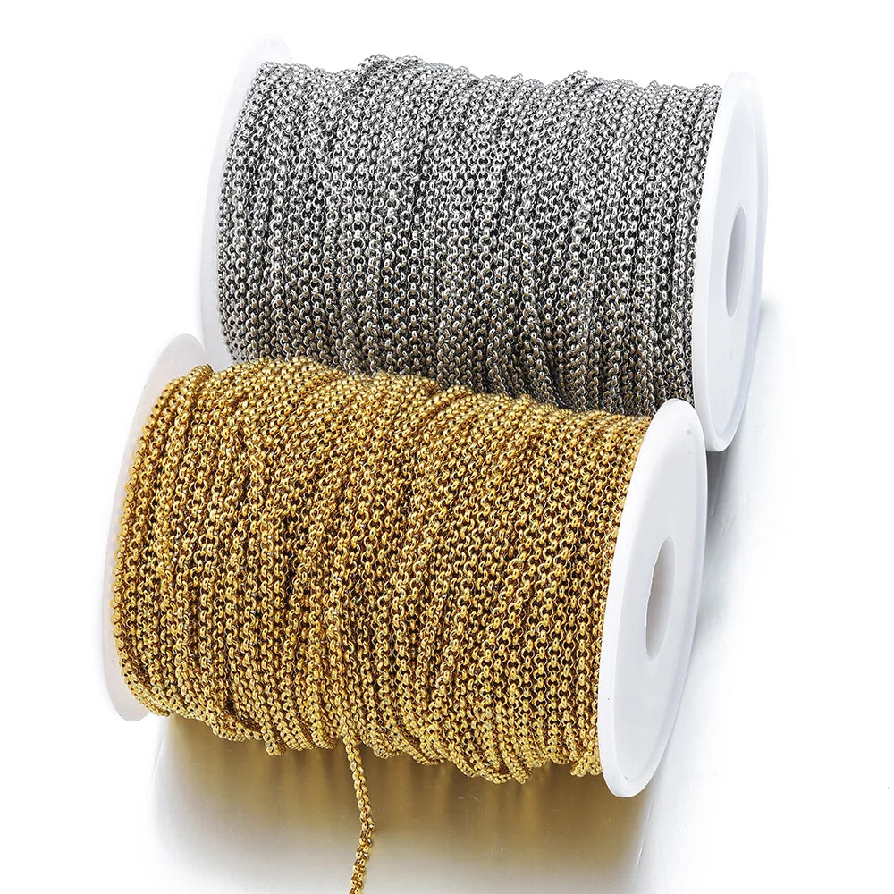 1Meter Stainless Steel Chains 2.5/3/4mm Gold Round O Shape Necklace Bracelet DIY Jewelry Making