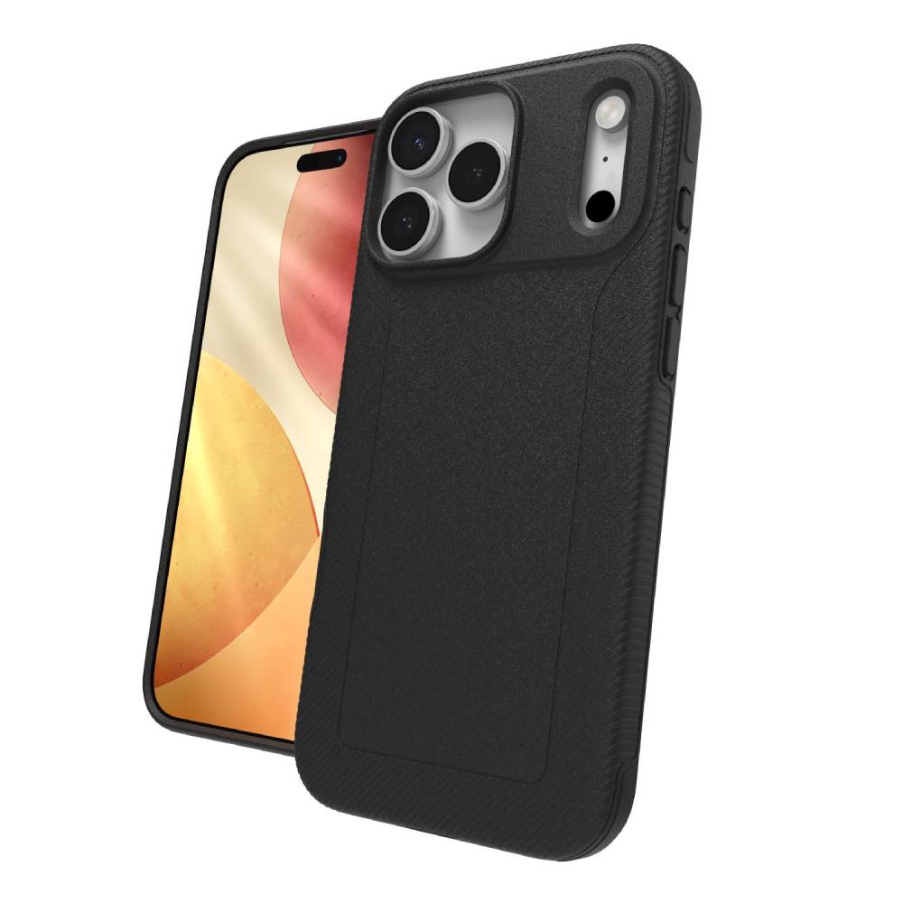 A slim protective case designed for iPhone 17 Pro Max with durable graphene reinforcement for lasting strength. It combines lightweight construction with a comfortable fit that adds no extra bulk to pockets or hands. Textured panels improve grip while enhancing the look with added detail. Magnetic compatibility supports smooth use with wireless chargers and accessories. Made with recycled materials, the case blends protection, style, and sustainability.