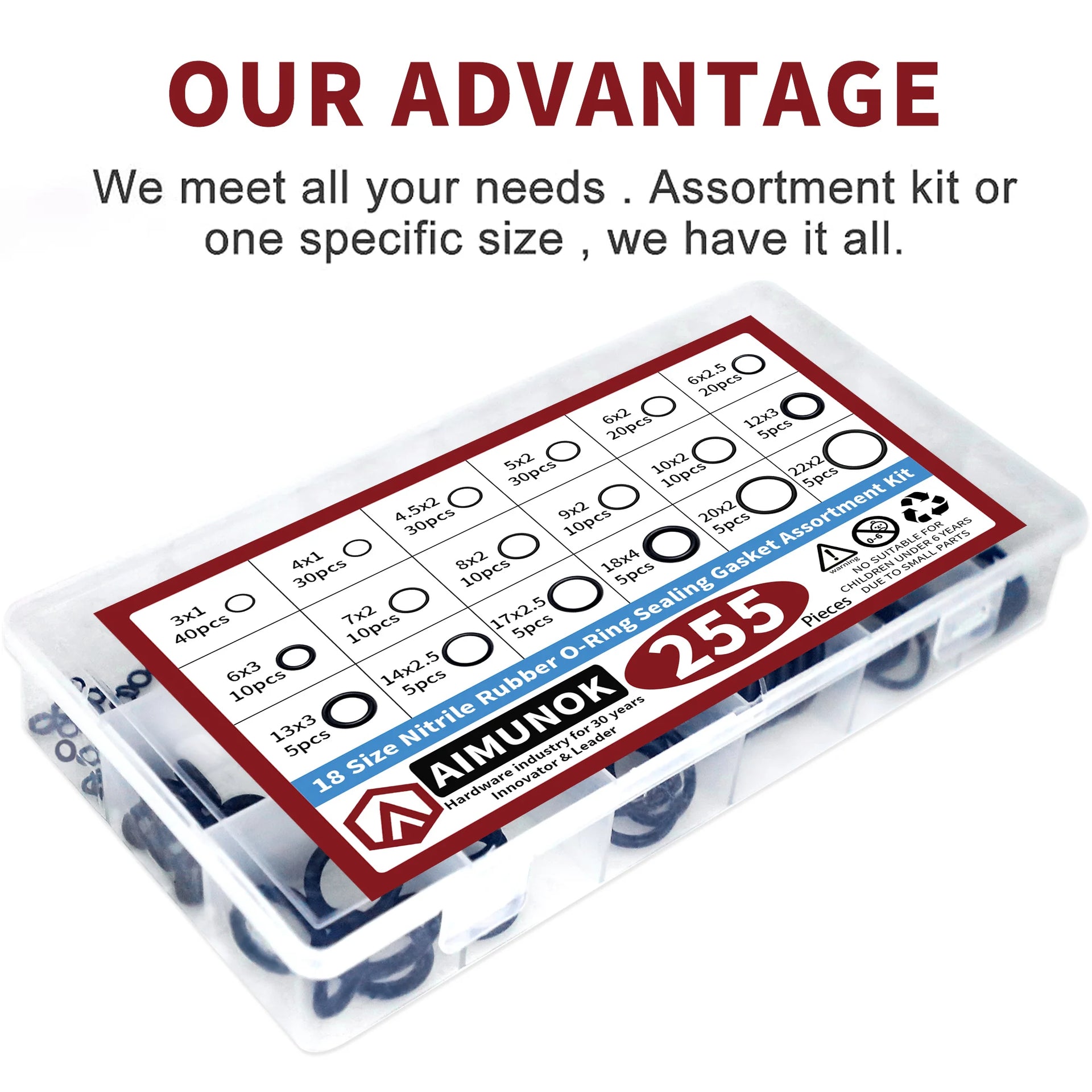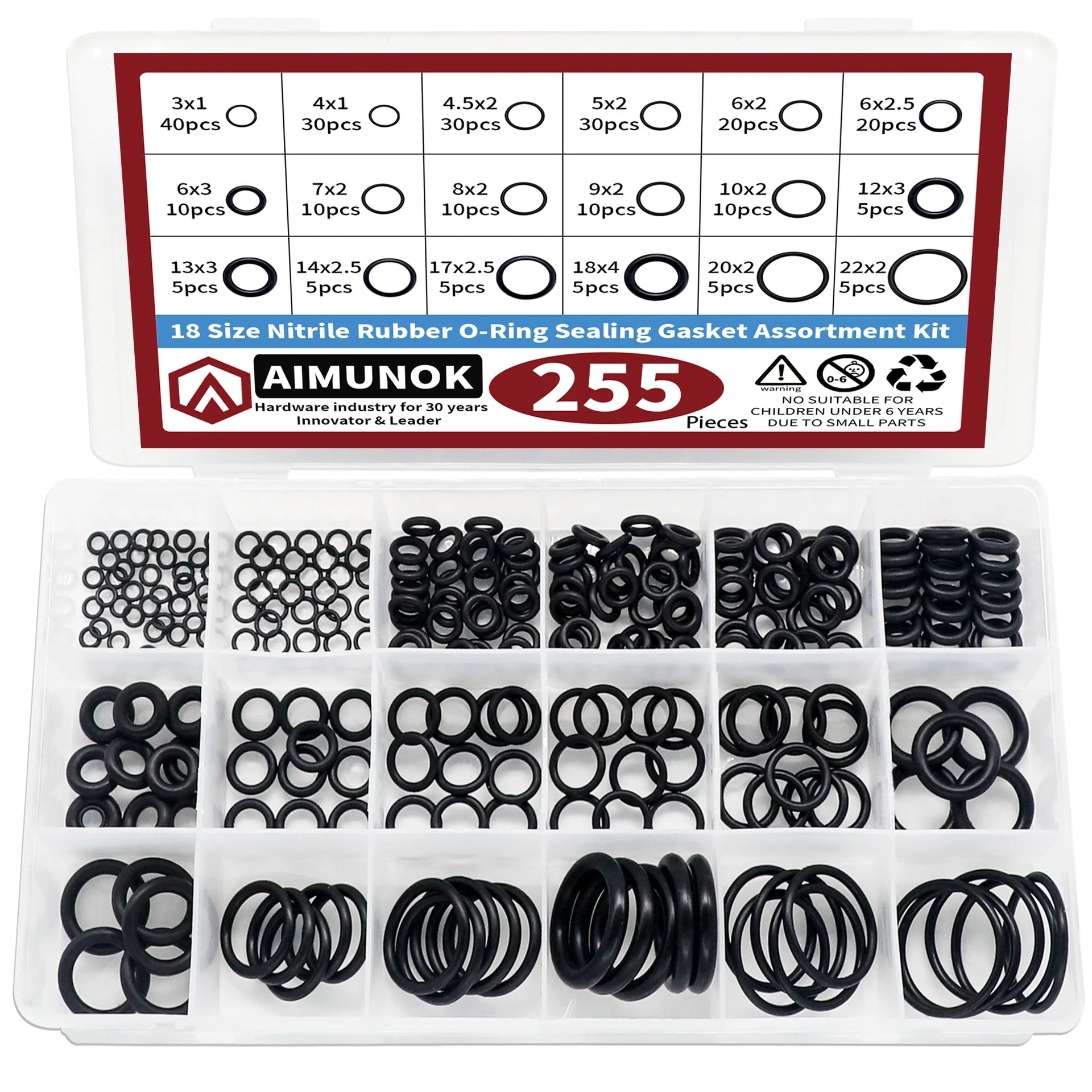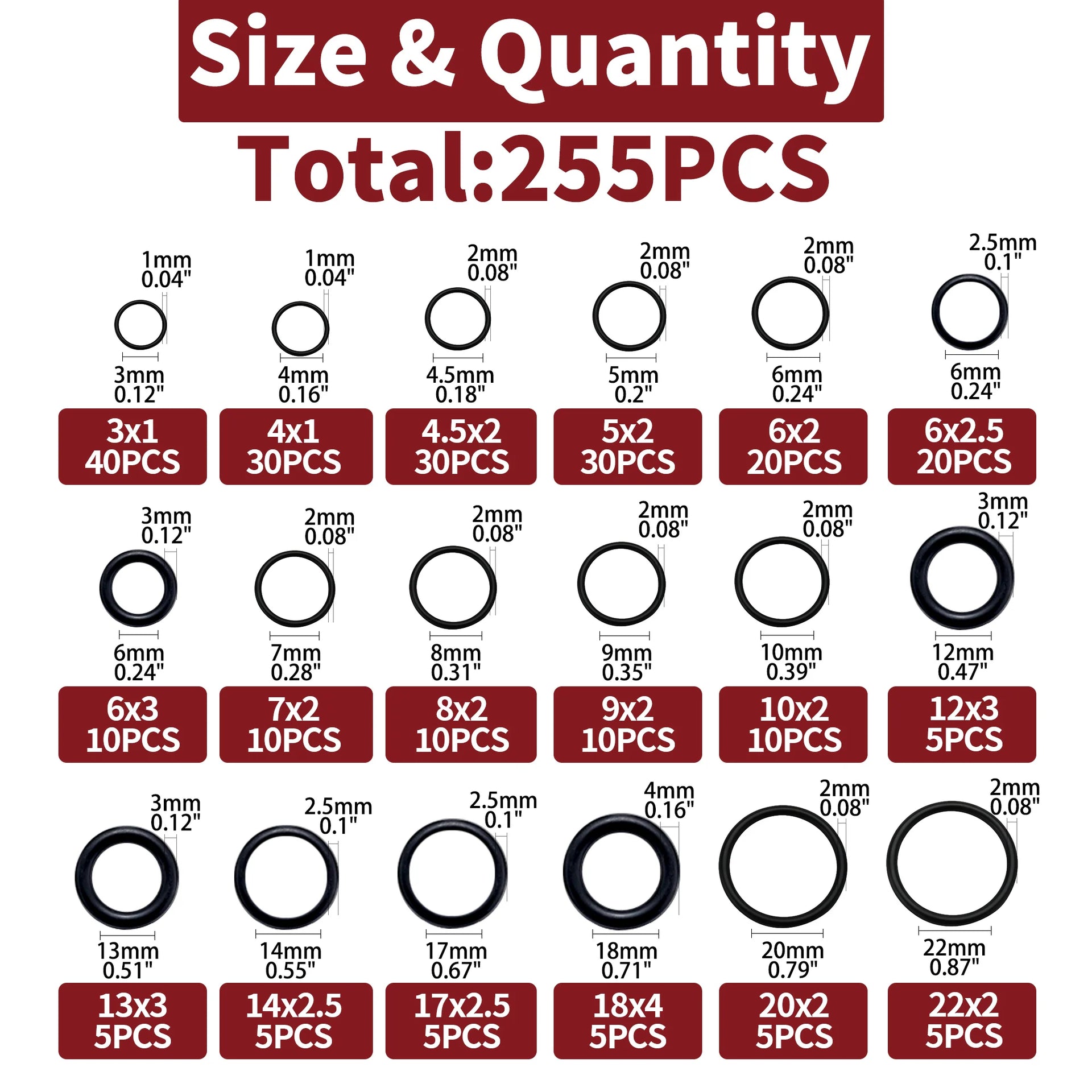 Kit de 255 juntas tóricas de goma, kit surtido de juntas de sellado de arandela NBR de 18 tamaños métricos, para grifos de plomería, automóviles, aire o gas