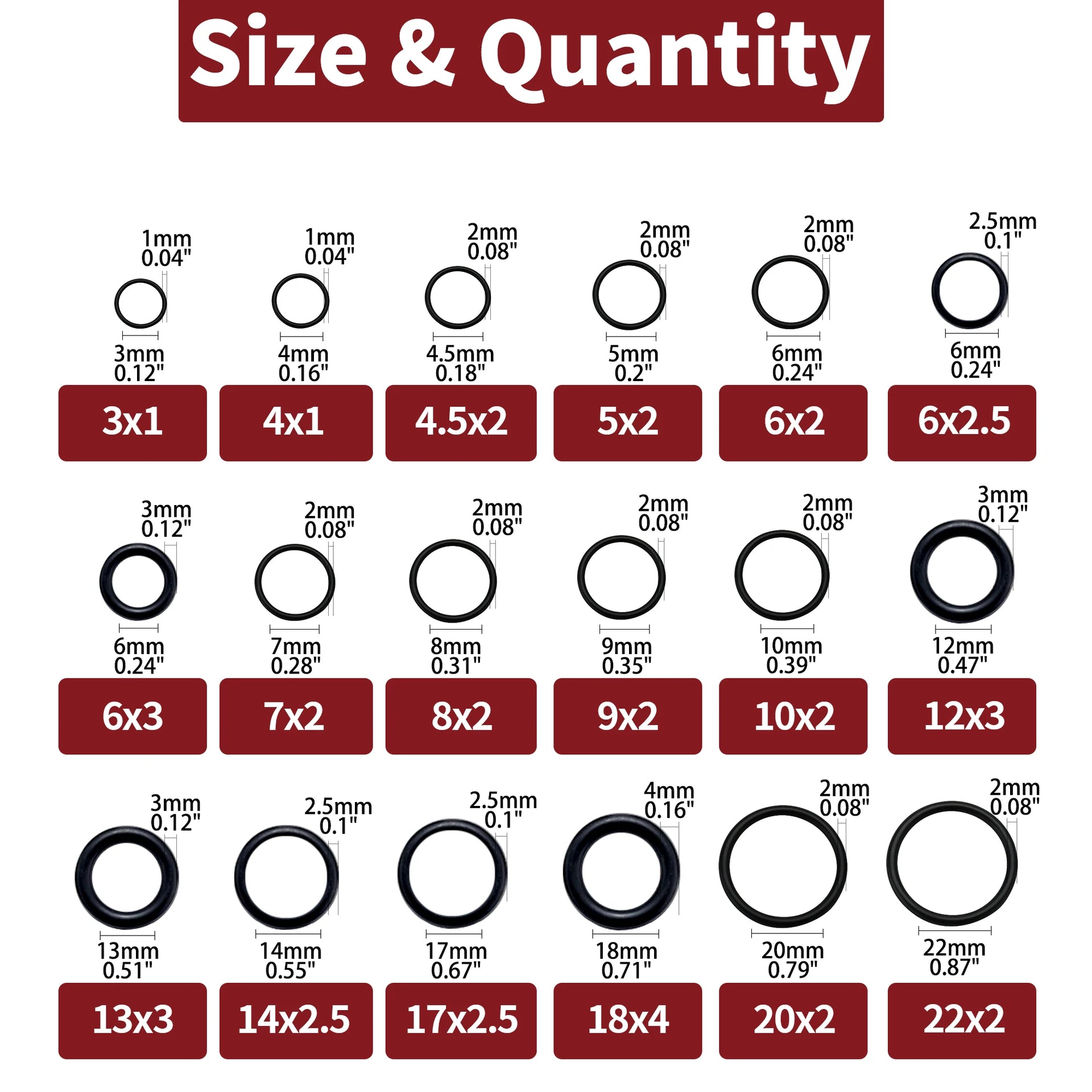 • Uso versátil: este kit de juntas tóricas de goma es ideal para diversas aplicaciones, como plomería, grifería, automoción, aire o gas, lo que lo convierte en una opción versátil para todas sus necesidades de sellado.