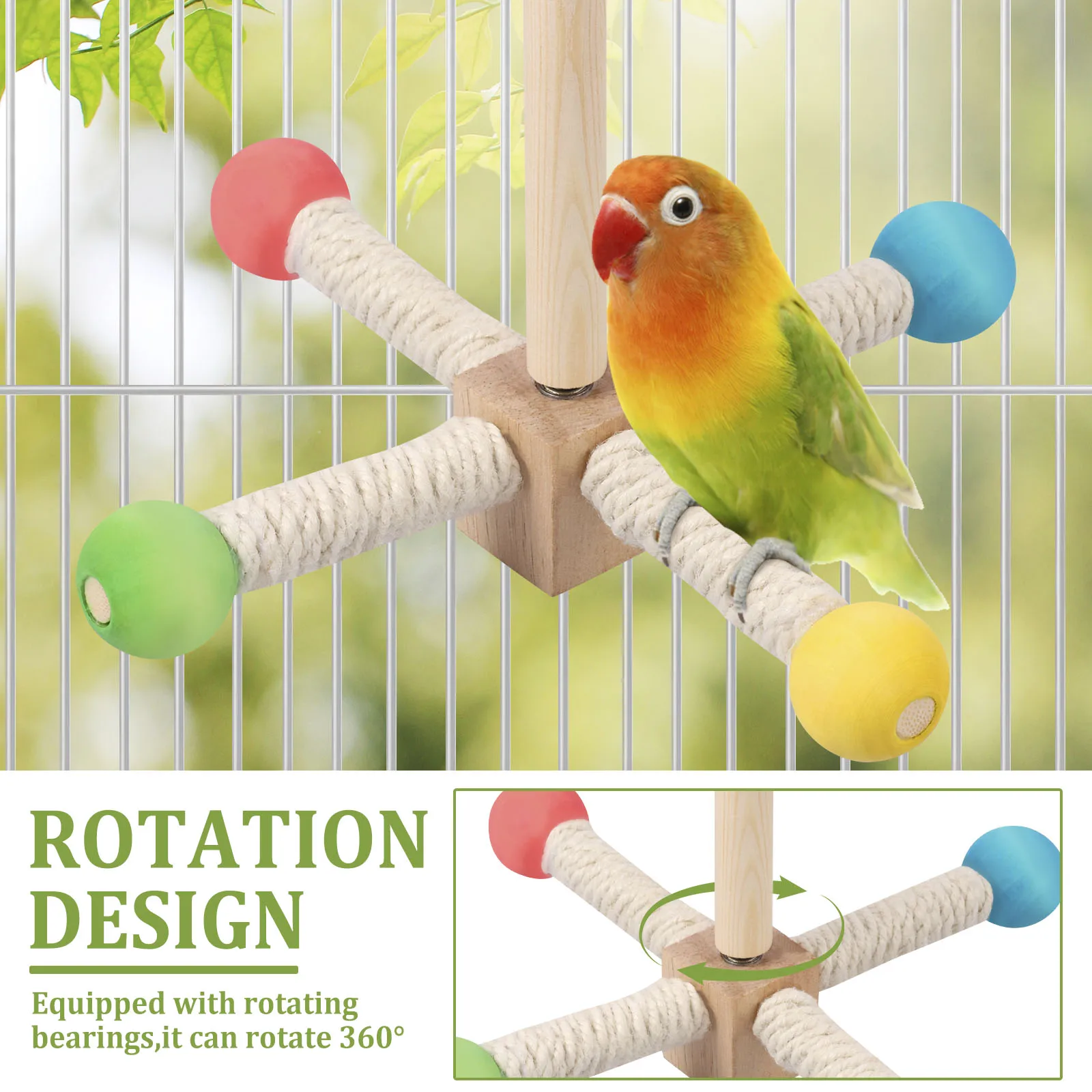 2Pcs Bird Standing Toy Set 360° Rotatable & Bell Wooden Interactive Spinning Parakeet Toys for Bird Cage Accessories NEW