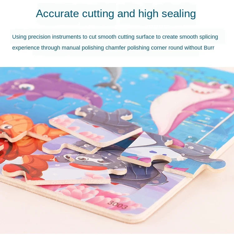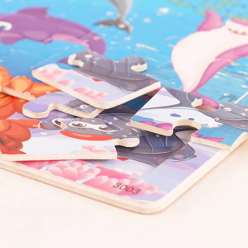 30 Pieces Wooden Jigsaw Puzzle Kids Cartoon Animal Vehicles