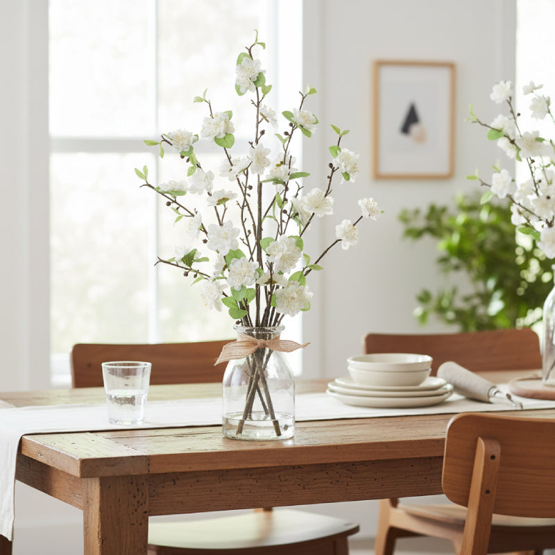- Lifelike white flowers create a sophisticated and elegant décor accent.