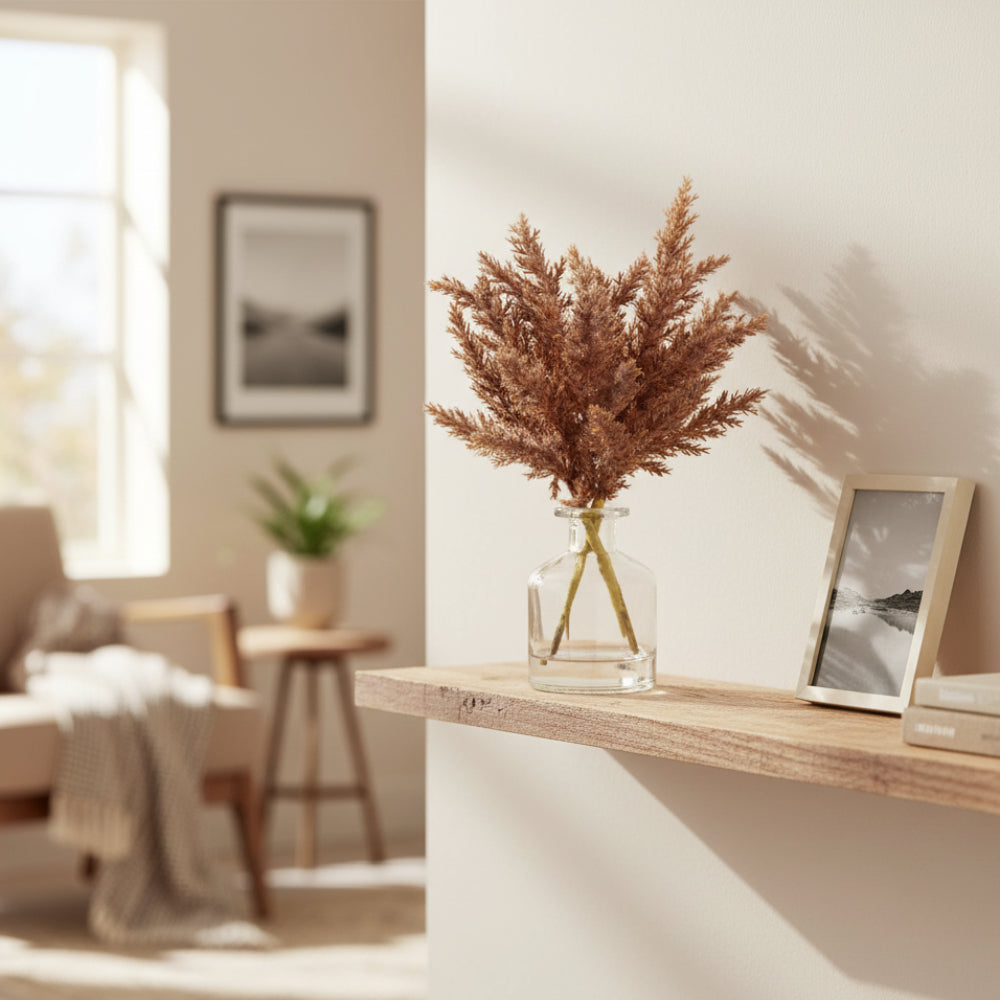 Bring a touch of natural elegance to your space with the Allstate Floral 11" Artificial Pampas Grass Arrangement with Glass Vase in brown. This stunning décor accent captures the soft, airy texture of real pampas grass while offering the lasting beauty of a maintenance-free design. The clear glass vase adds a refined, modern touch that complements any interior style, from rustic to contemporary. Perfect for accent tables, shelves, or office spaces, this arrangement provides a cozy, organic feel and elevates any room with its understated charm and sophistication.
