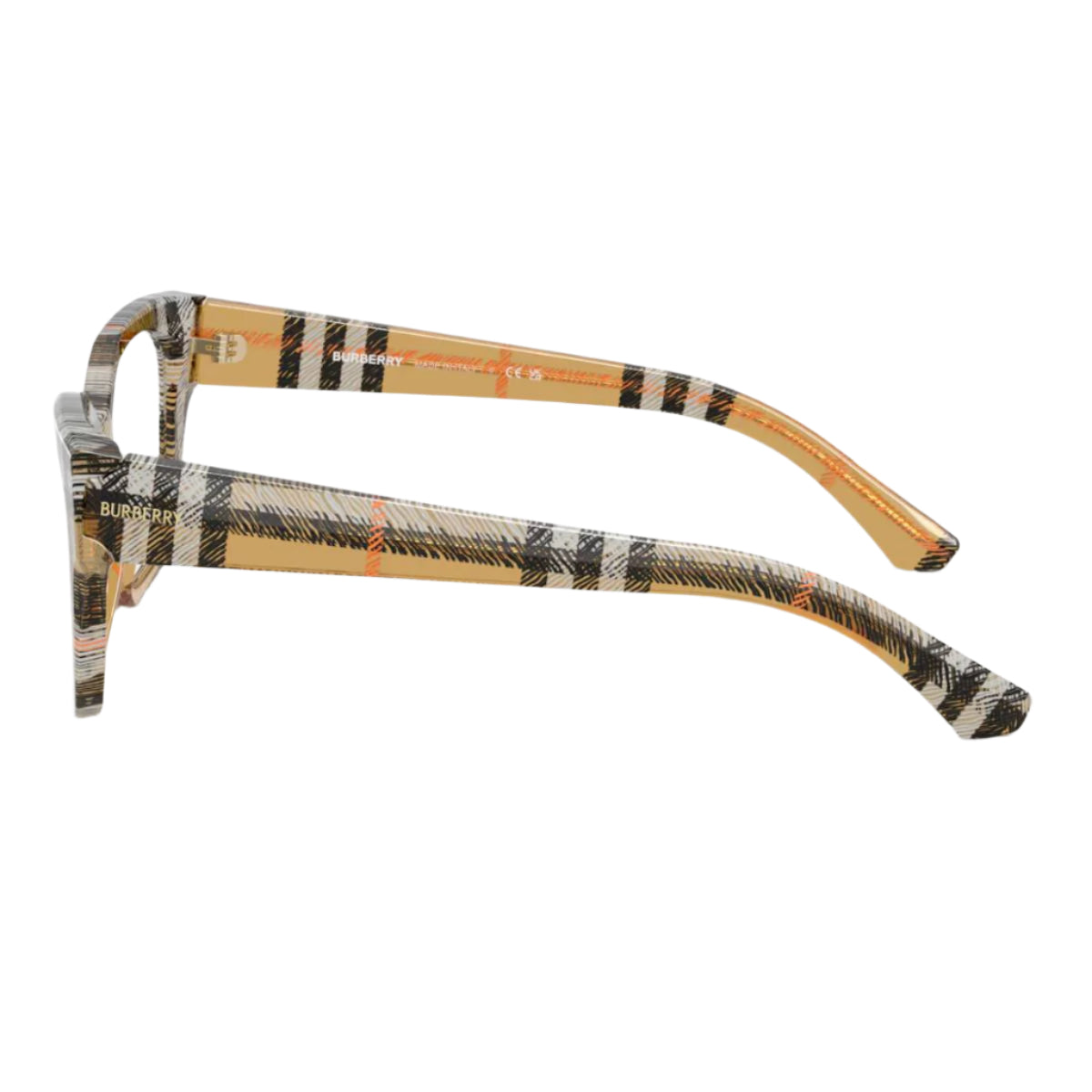 Experience the perfect blend of style and optical functionality with Burberry. These cat-eye shaped eyeglasses are crafted from durable acetate, featuring a polished check sand finish accented with black details. The design offers a striking and sophisticated look, perfect for both fashion and prescription needs. These frames embody the timeless elegance and quality that define Burberry.